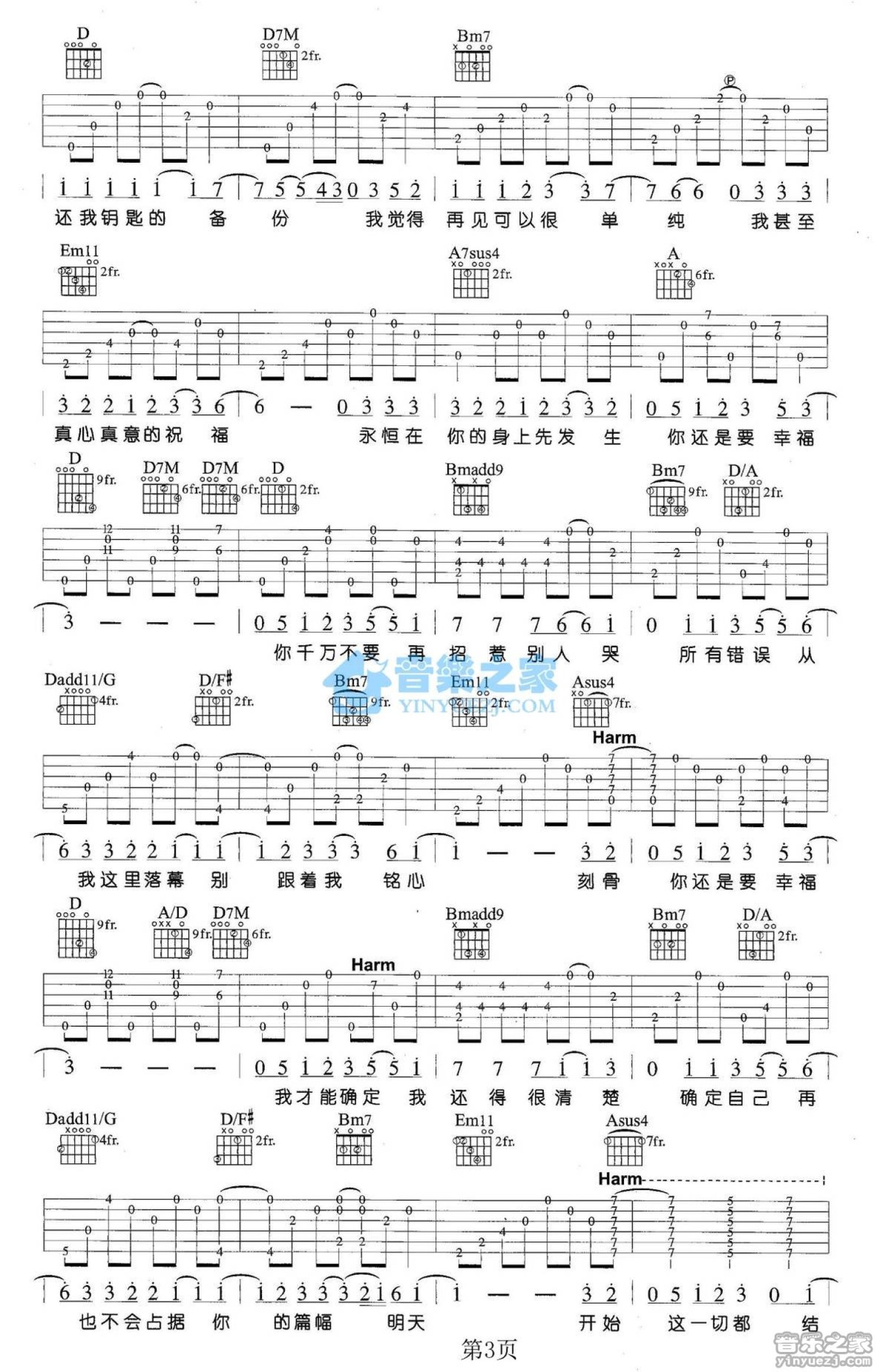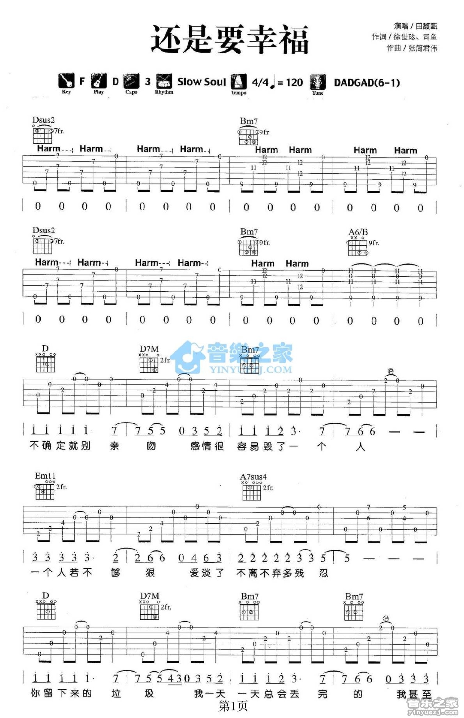 曲谱介绍: D调版《还是要幸福》吉他弹唱六线谱