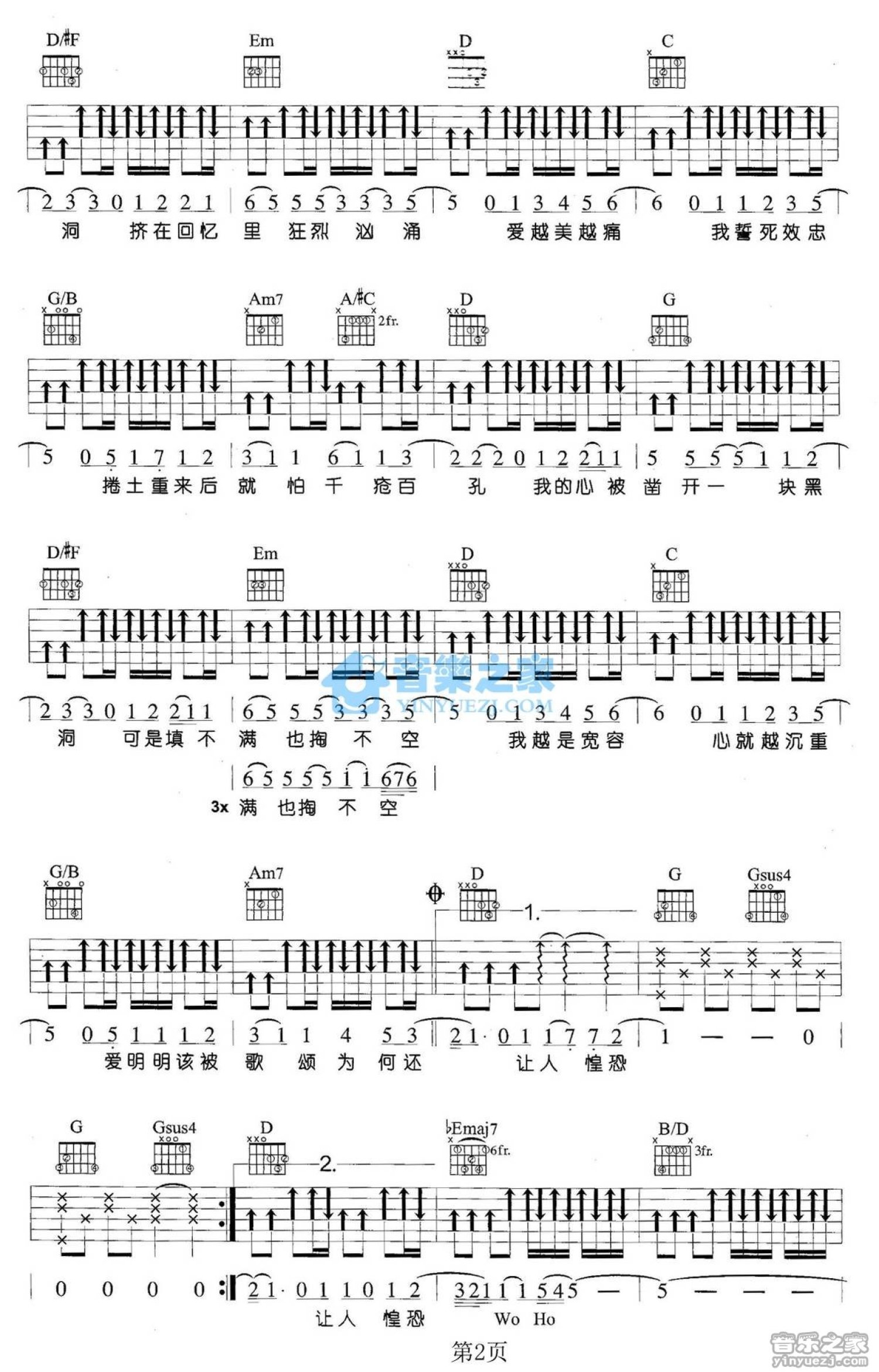 曲谱介绍: G调版 陈势安《心洞》吉他弹唱六线谱