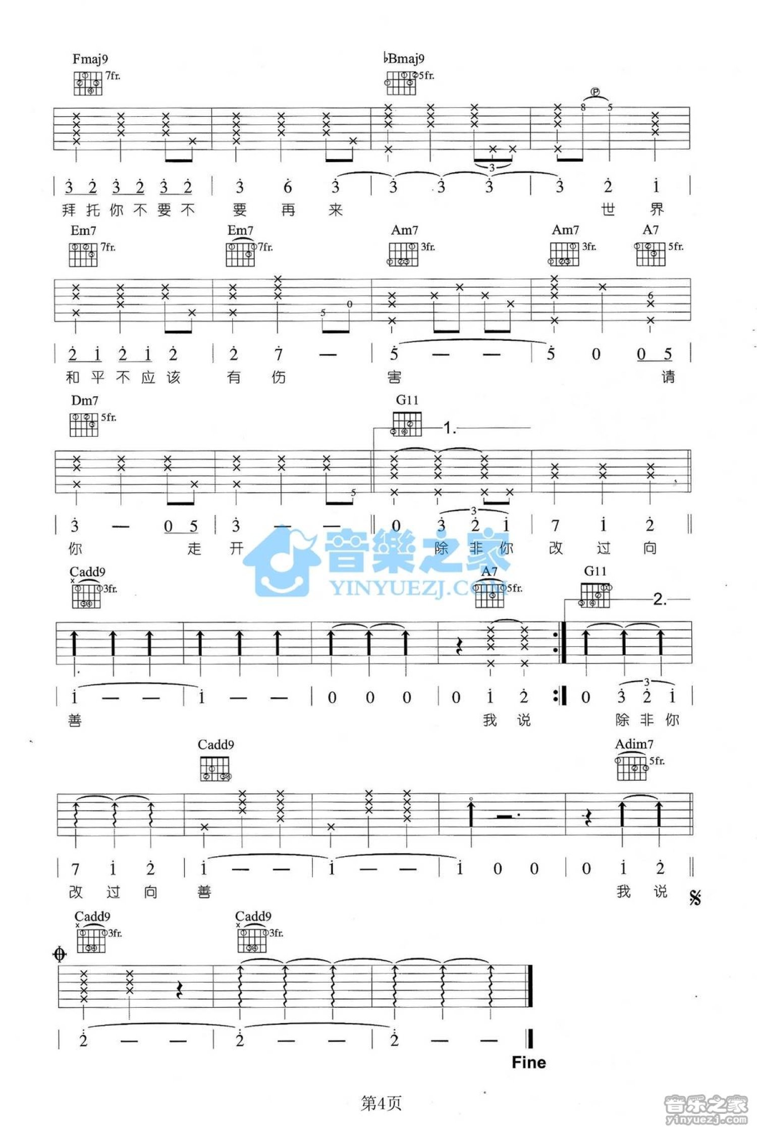 吉他弹唱C调来源:良好市民1418 浏览2021-03-26 22:06发布图谱共4页