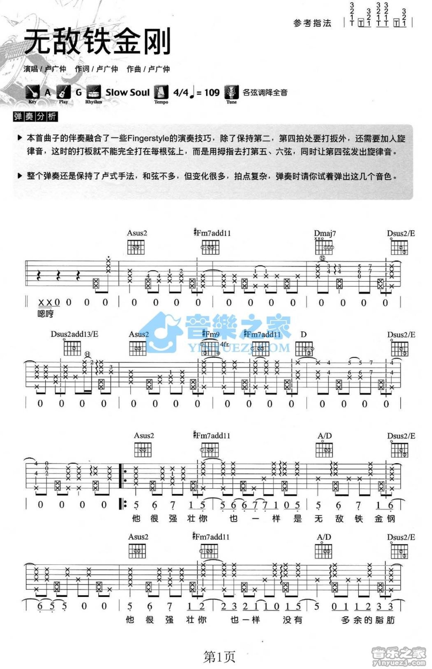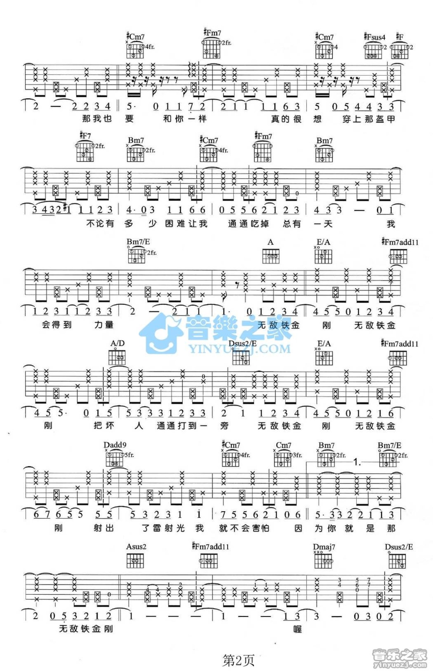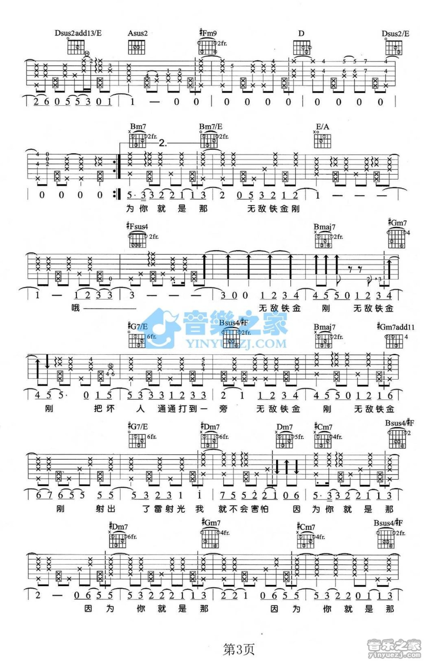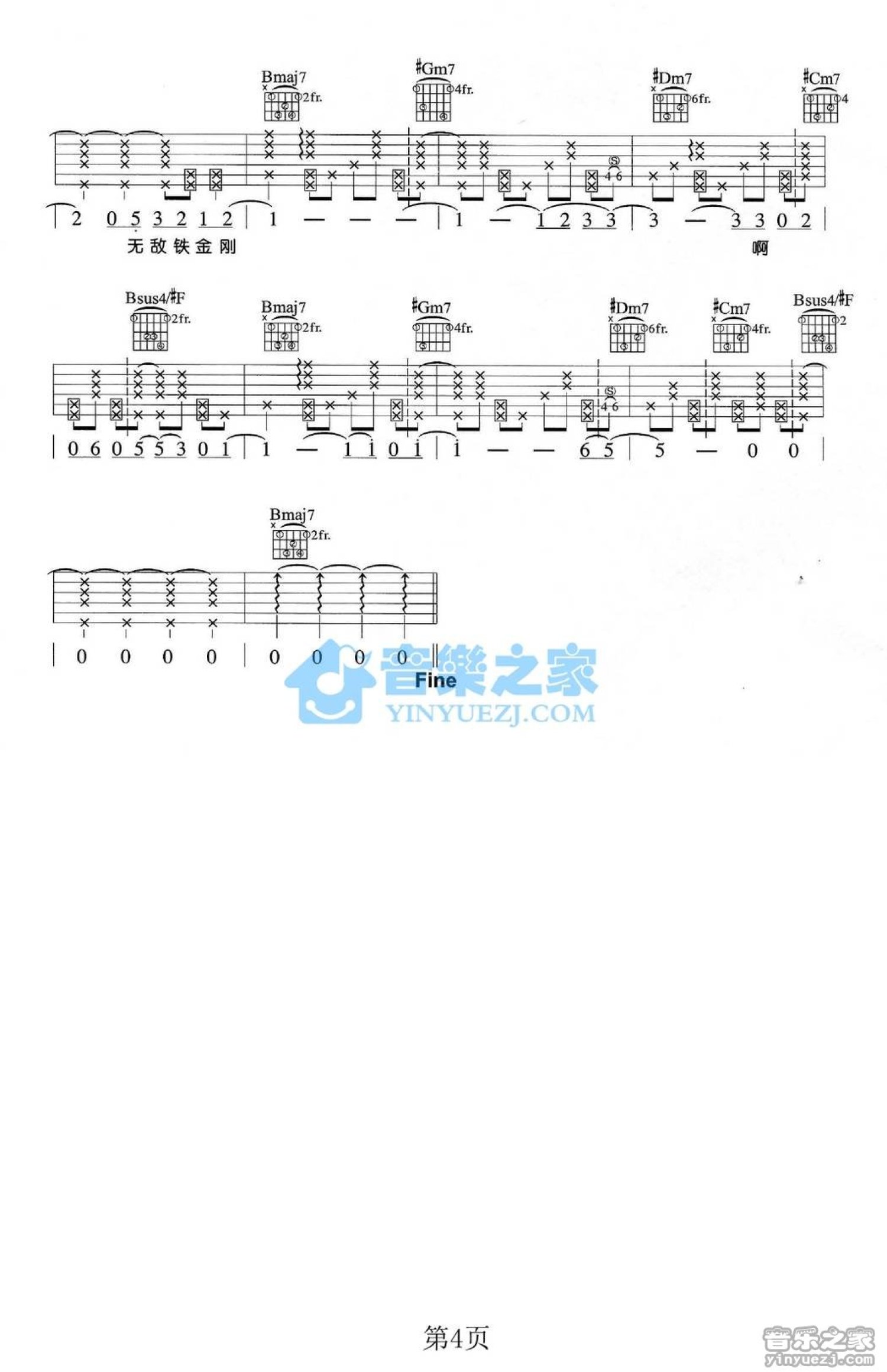 曲谱介绍: G调版《无敌铁金刚》吉他弹唱六线谱
