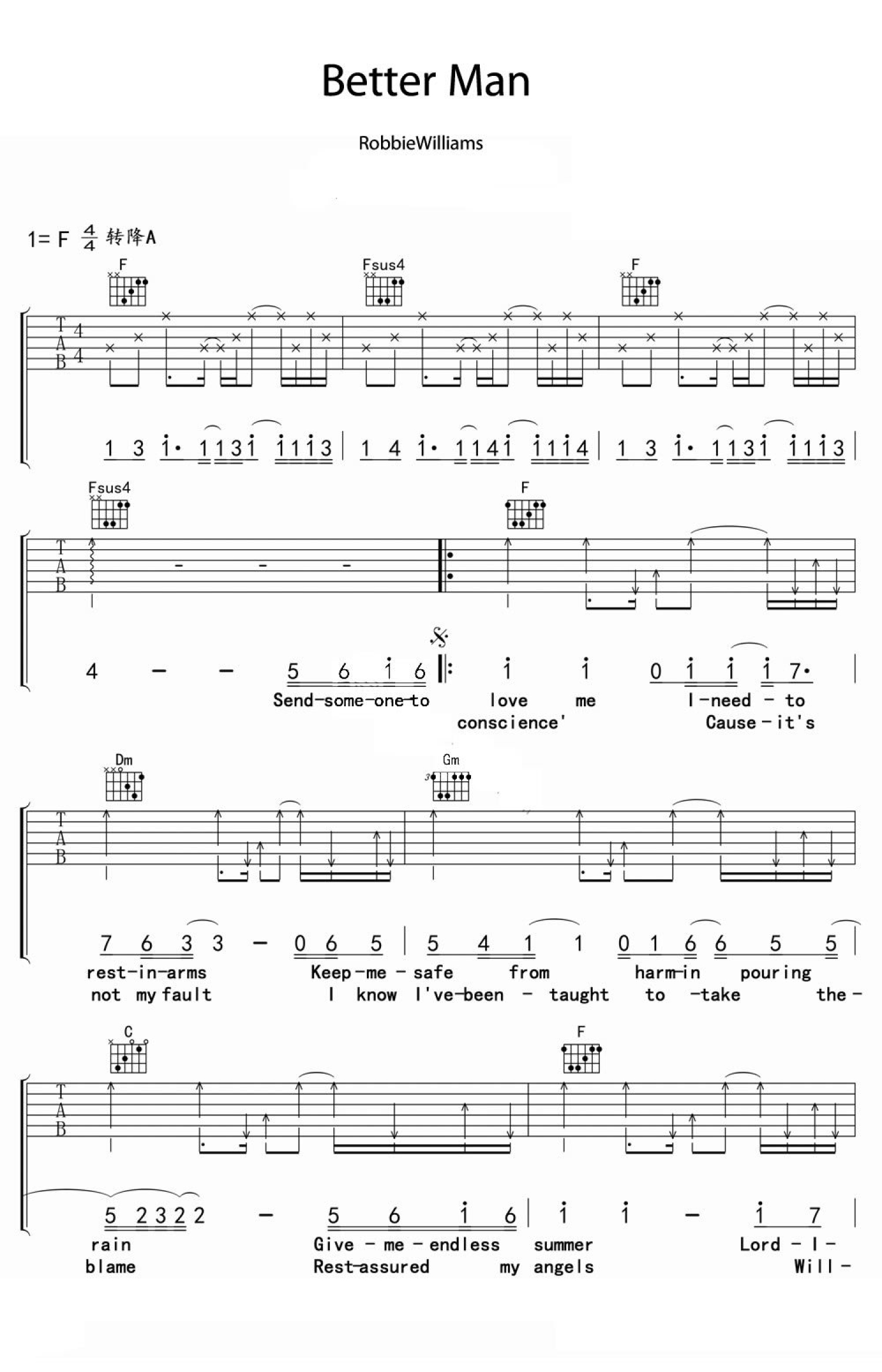Better Man吉他谱 - Robbie Williams - 吉他弹唱谱