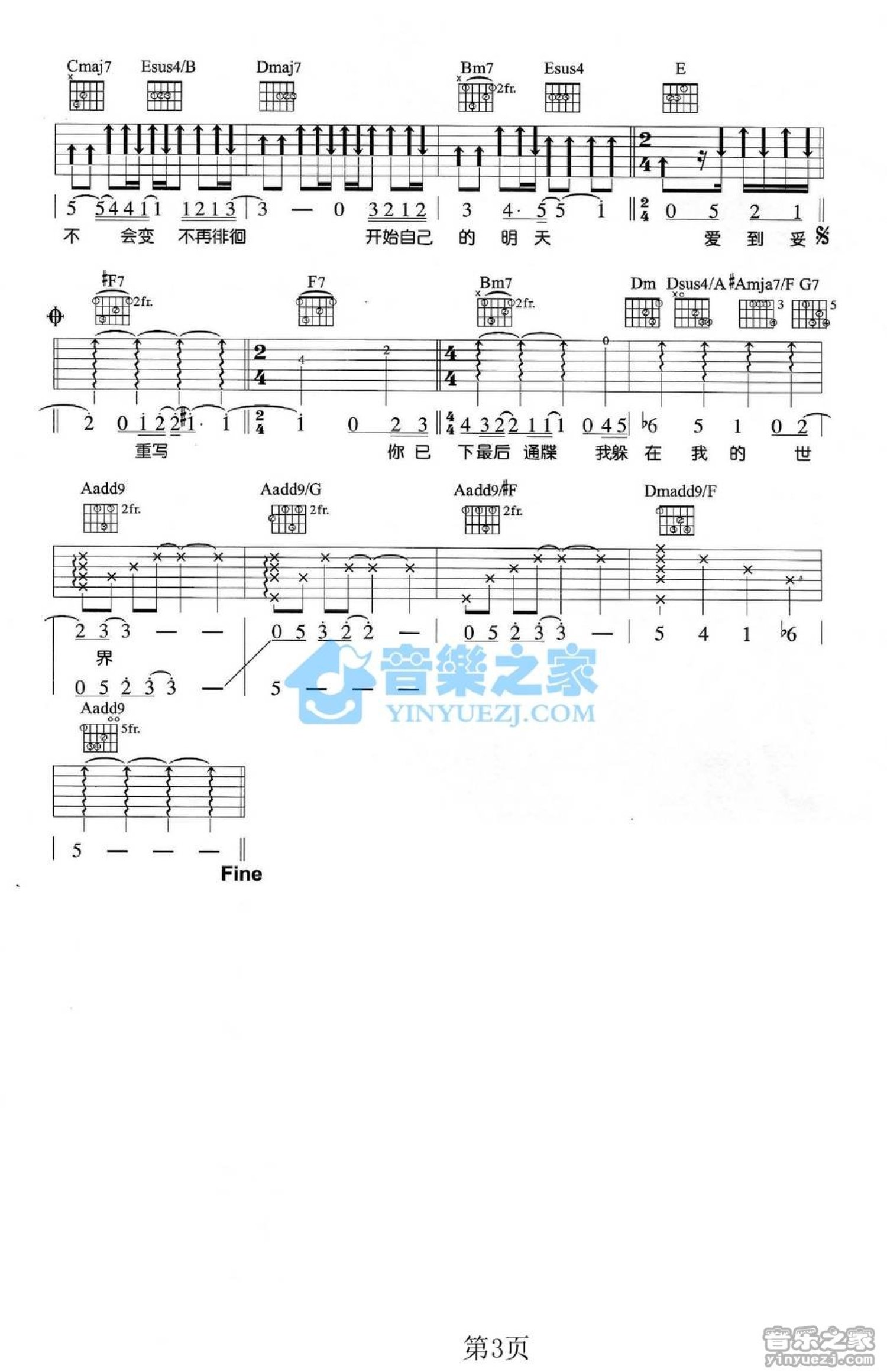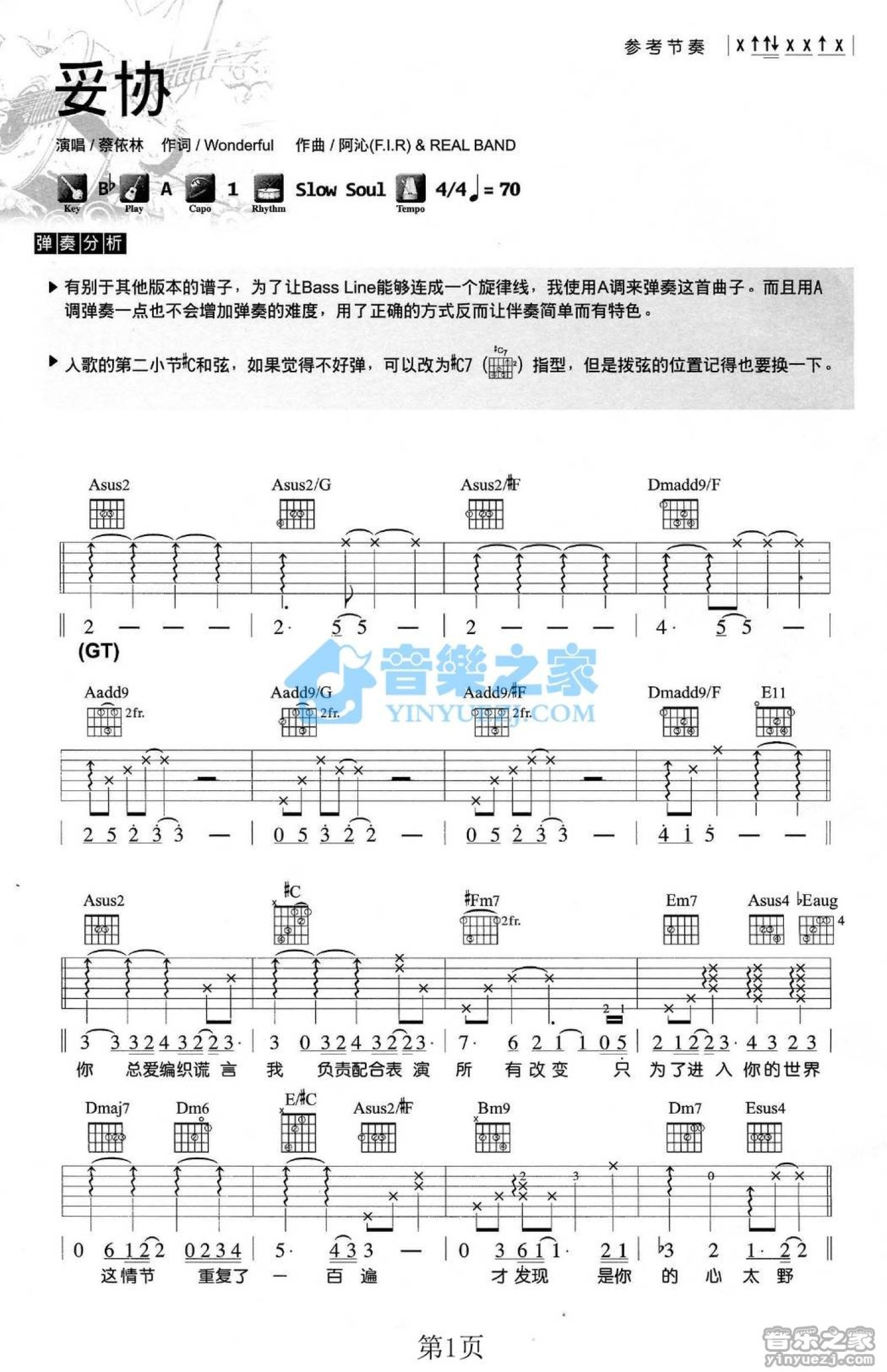 曲谱介绍: A调版 蔡依林《妥协》吉他弹唱六线谱