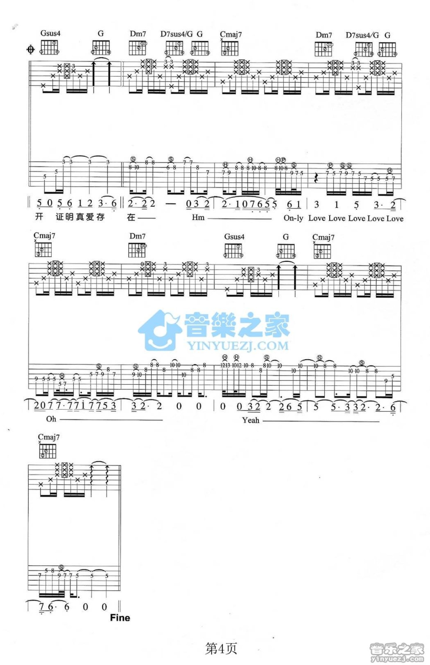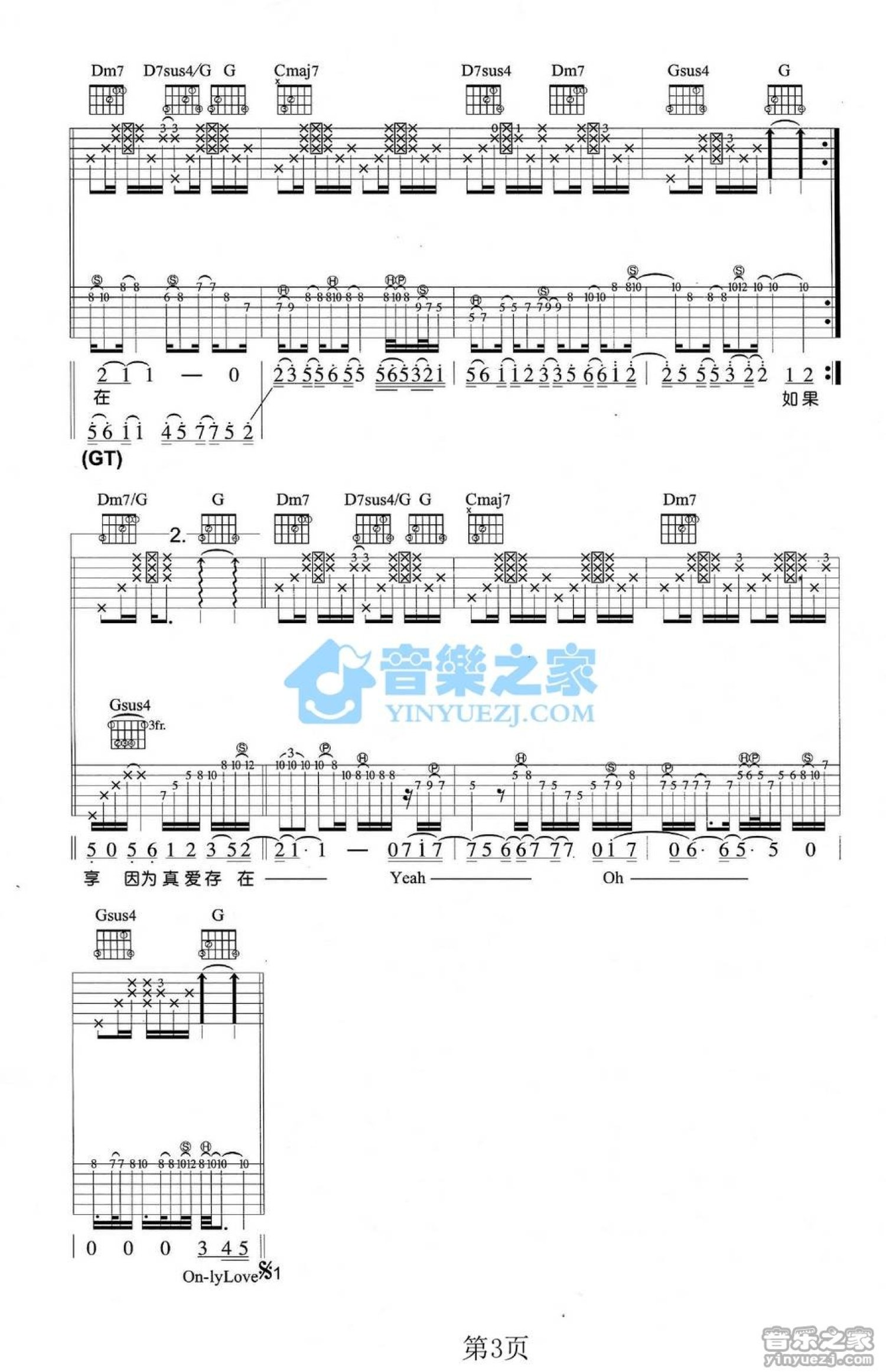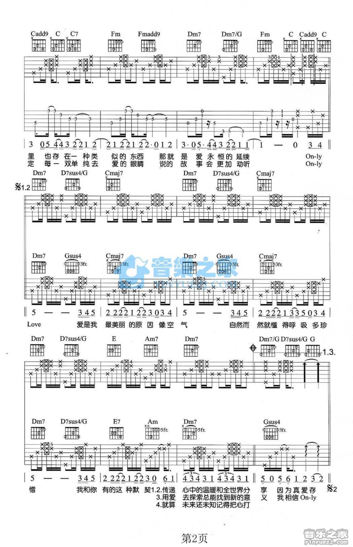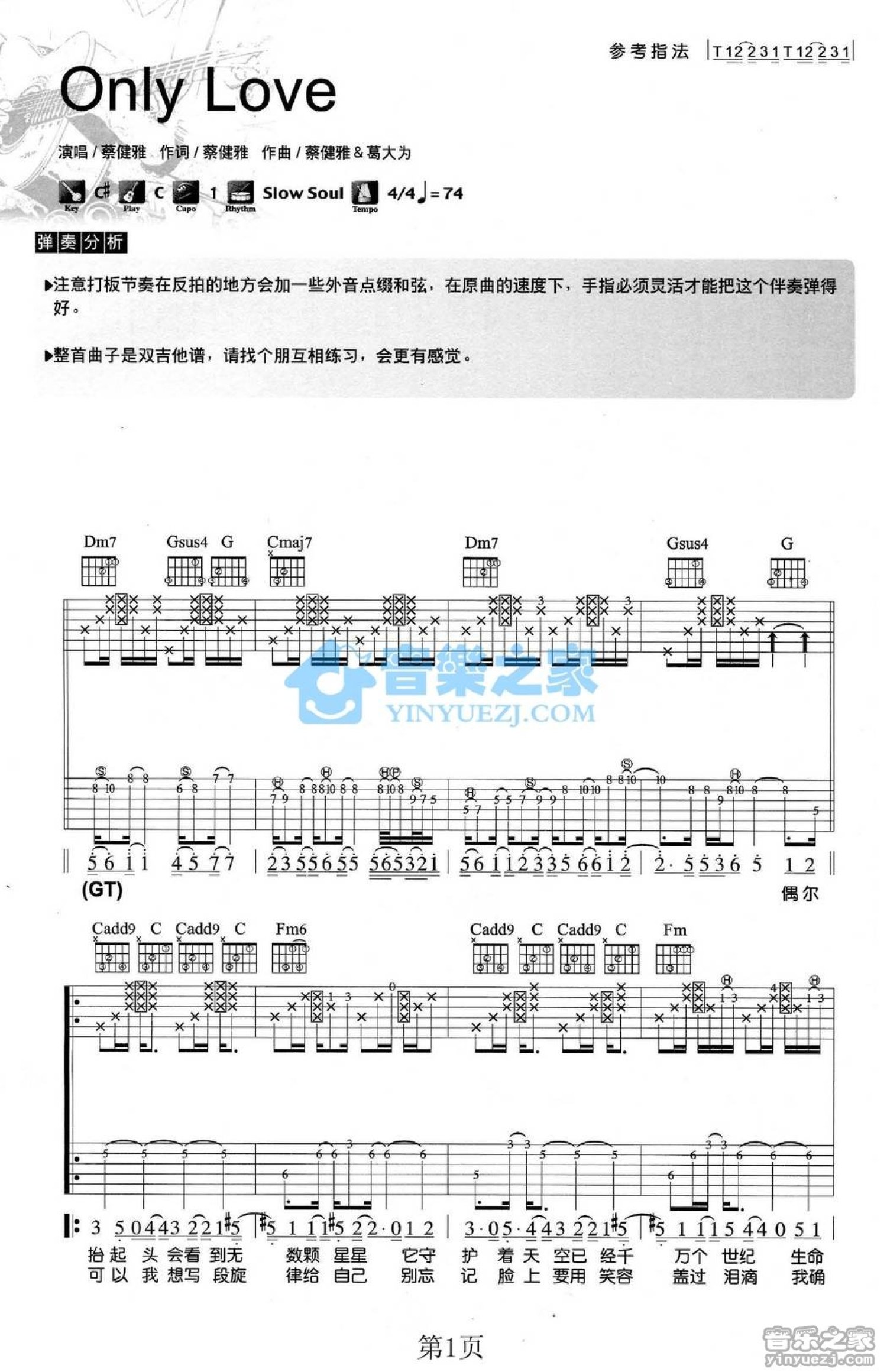 曲谱介绍: C调双吉他版 蔡健雅《Only Love》吉他弹唱六线谱