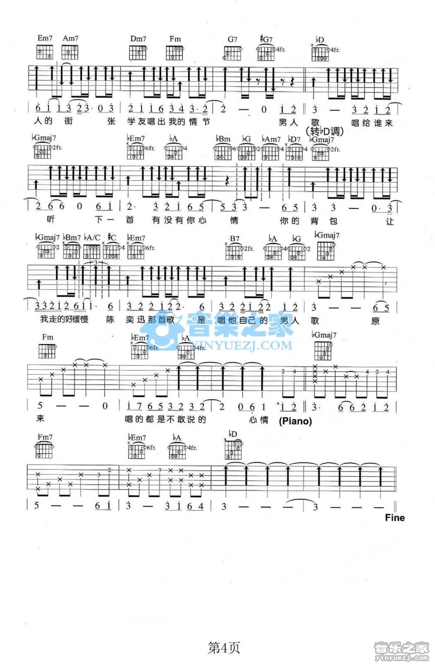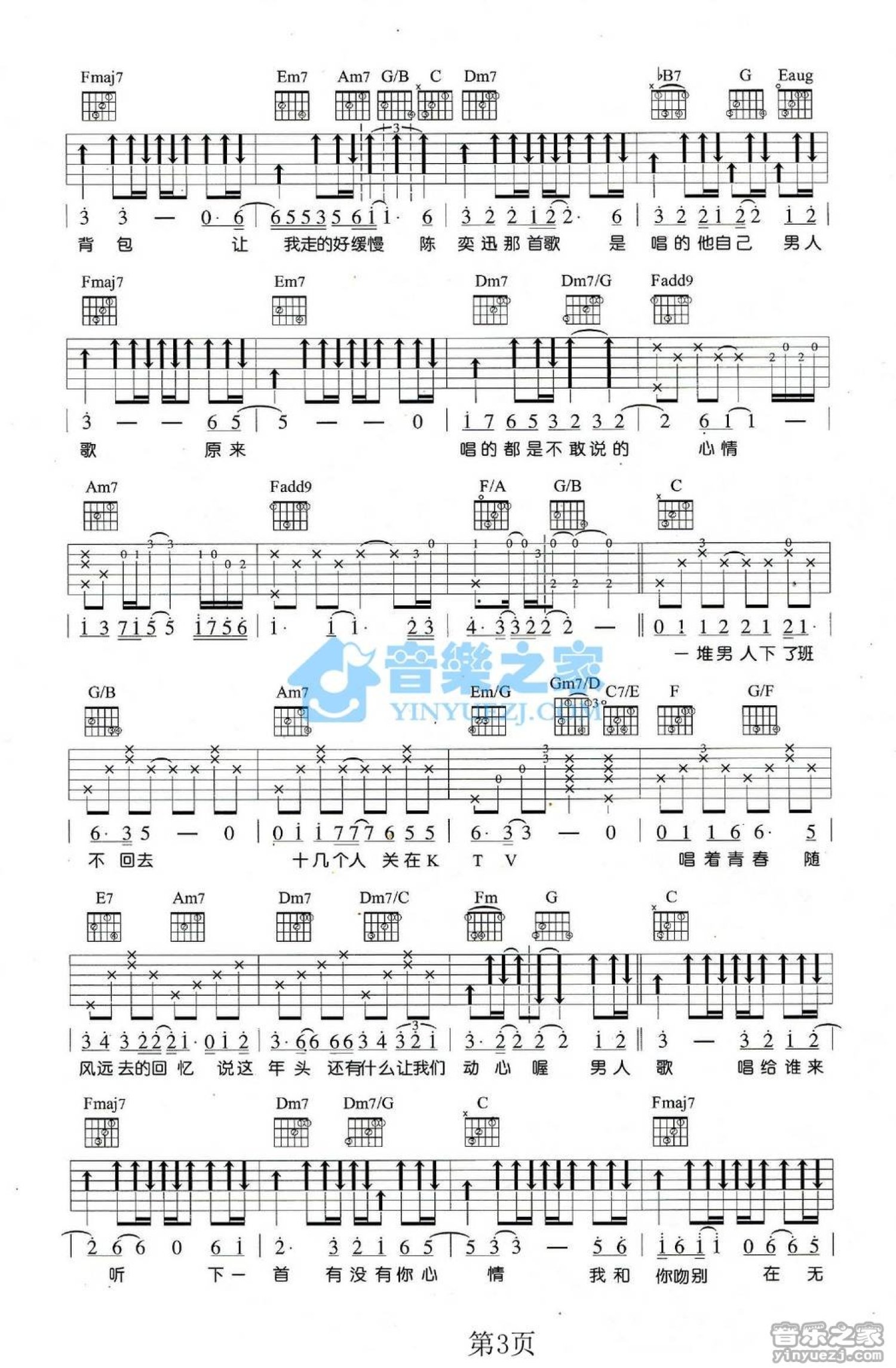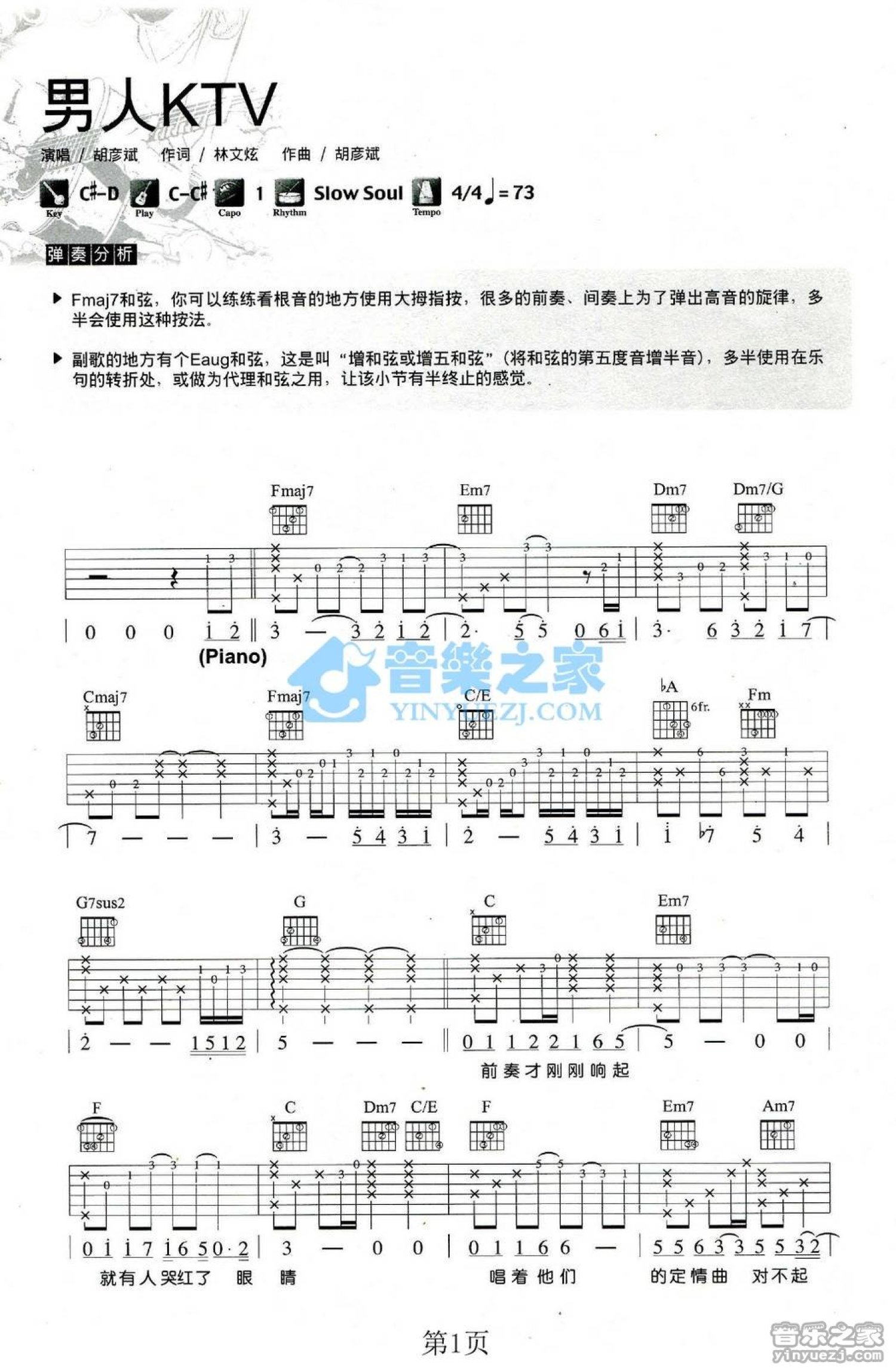 曲谱介绍: C转#C调版 胡彦斌《男人KTV》吉他弹唱六线谱