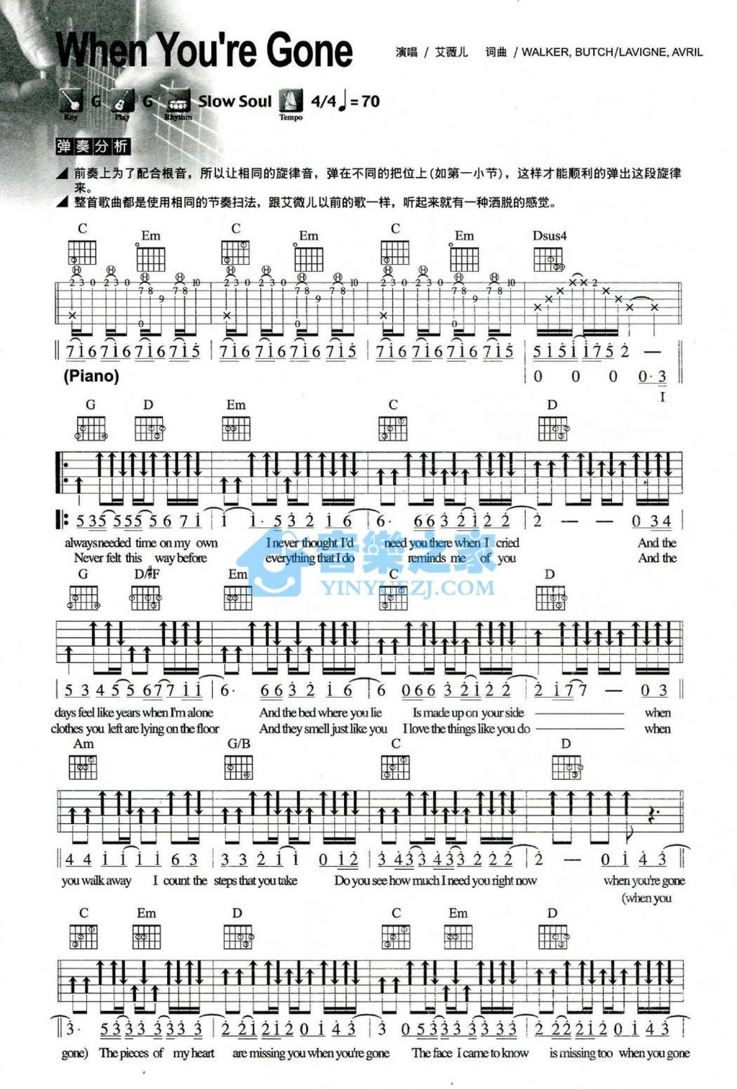 When You're Gone吉他谱 - 艾薇儿 - G调吉他弹唱谱