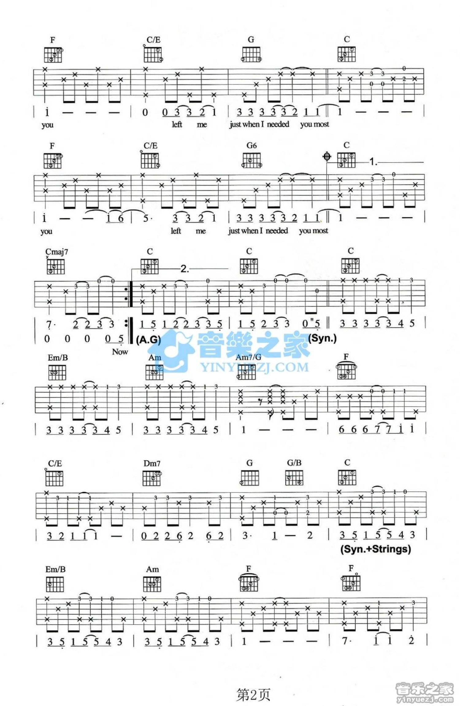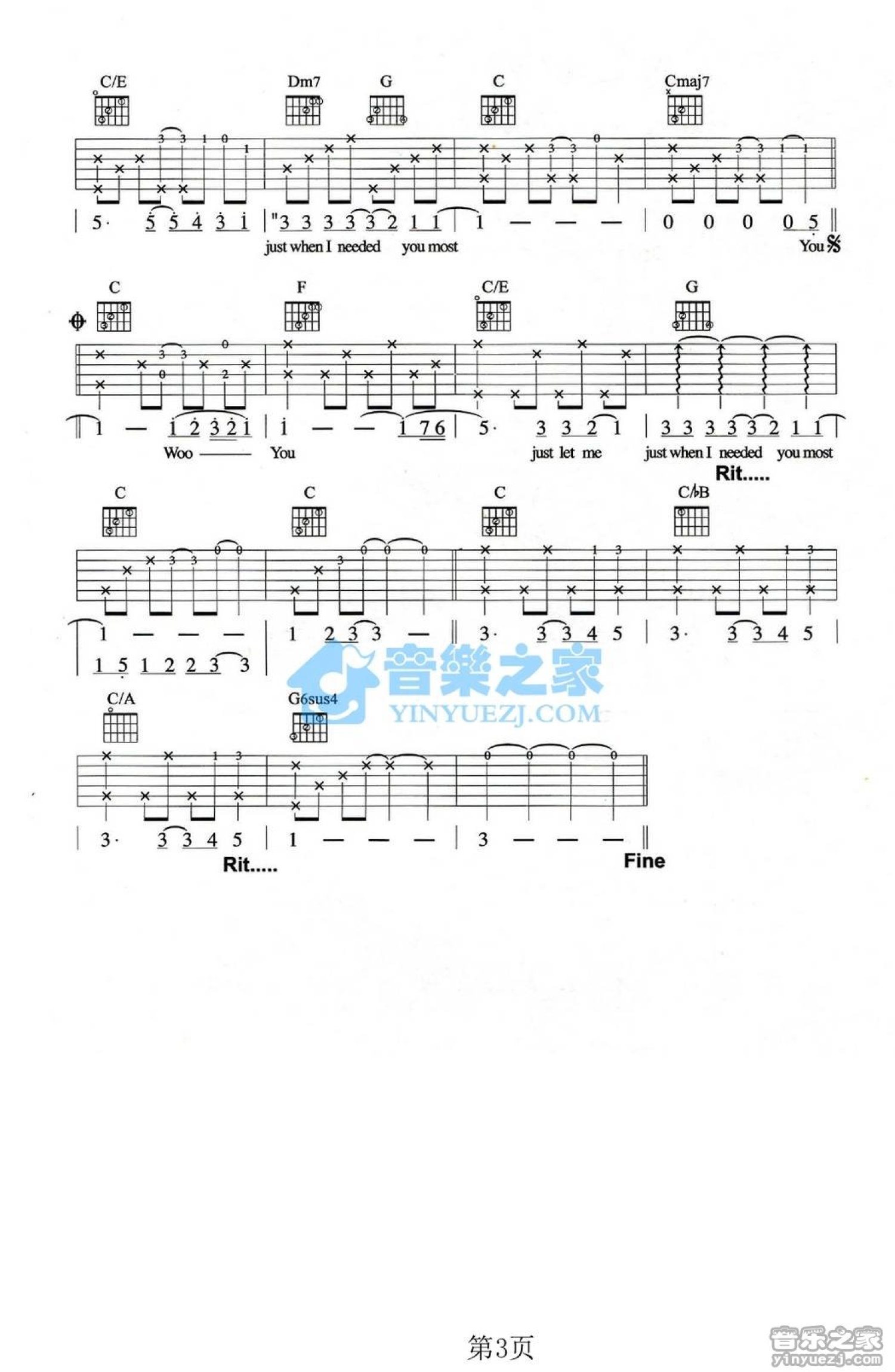 当前位置:琴谱网>吉他弹唱>Just When I Needed You Most