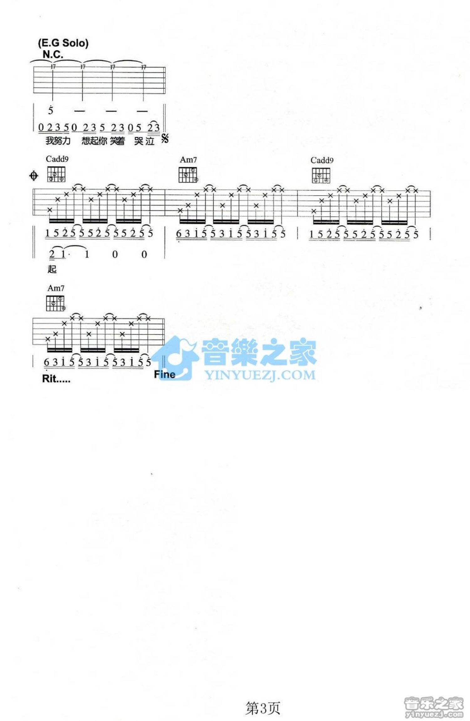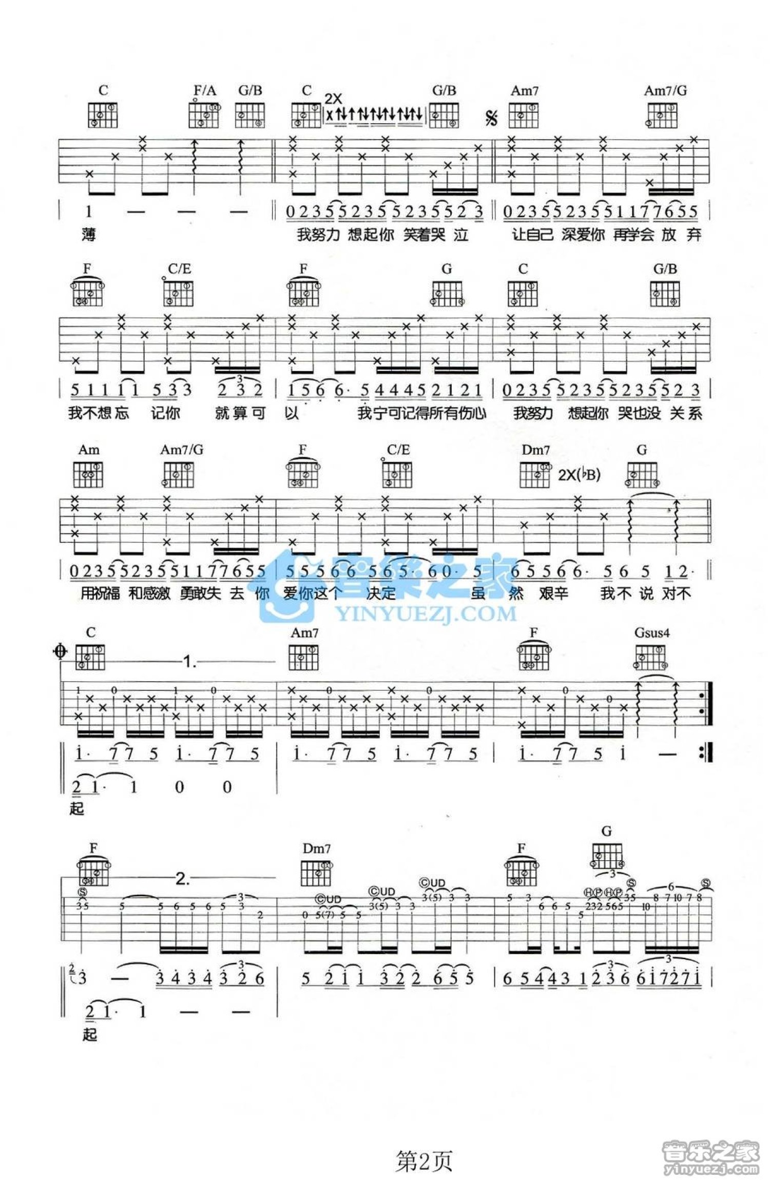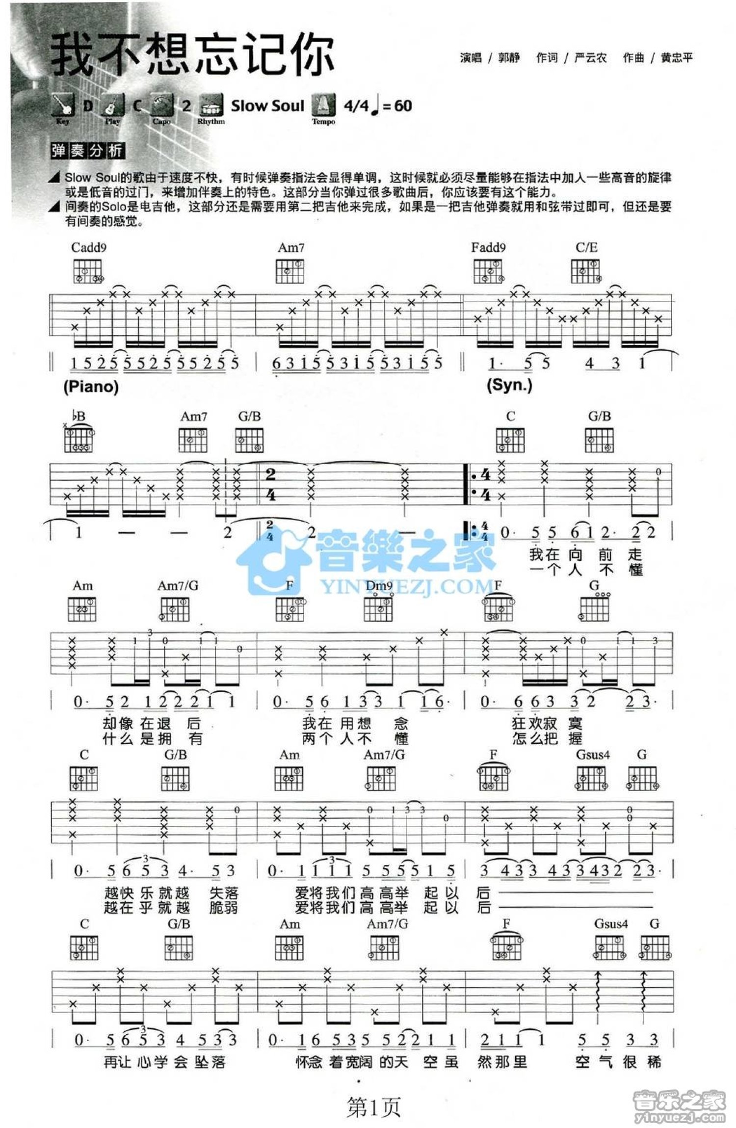 曲谱介绍: C调版 郭静《我不想忘记你》吉他弹唱六线谱