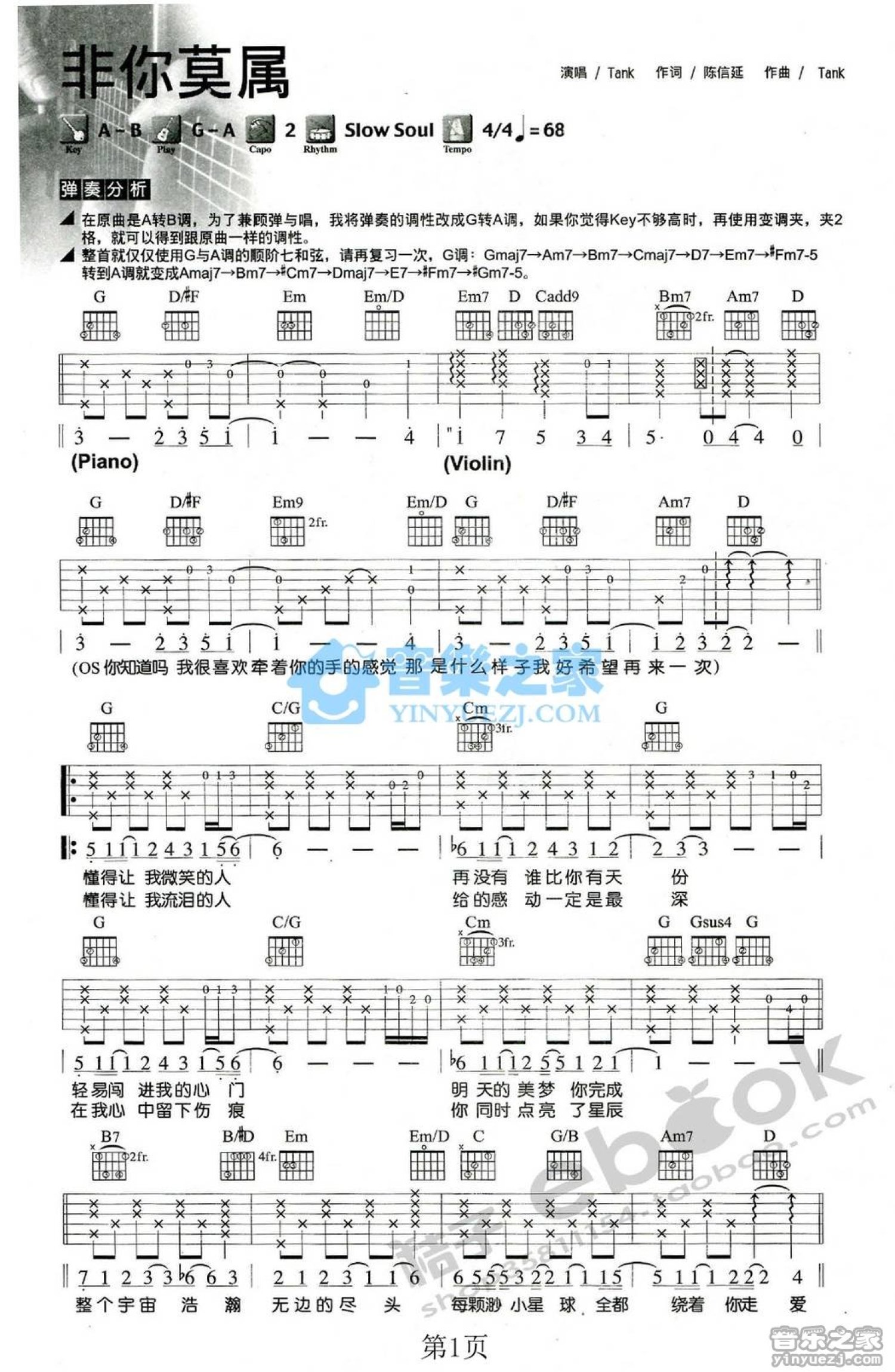 非你莫属吉他谱 - Tank - G调吉他弹唱谱