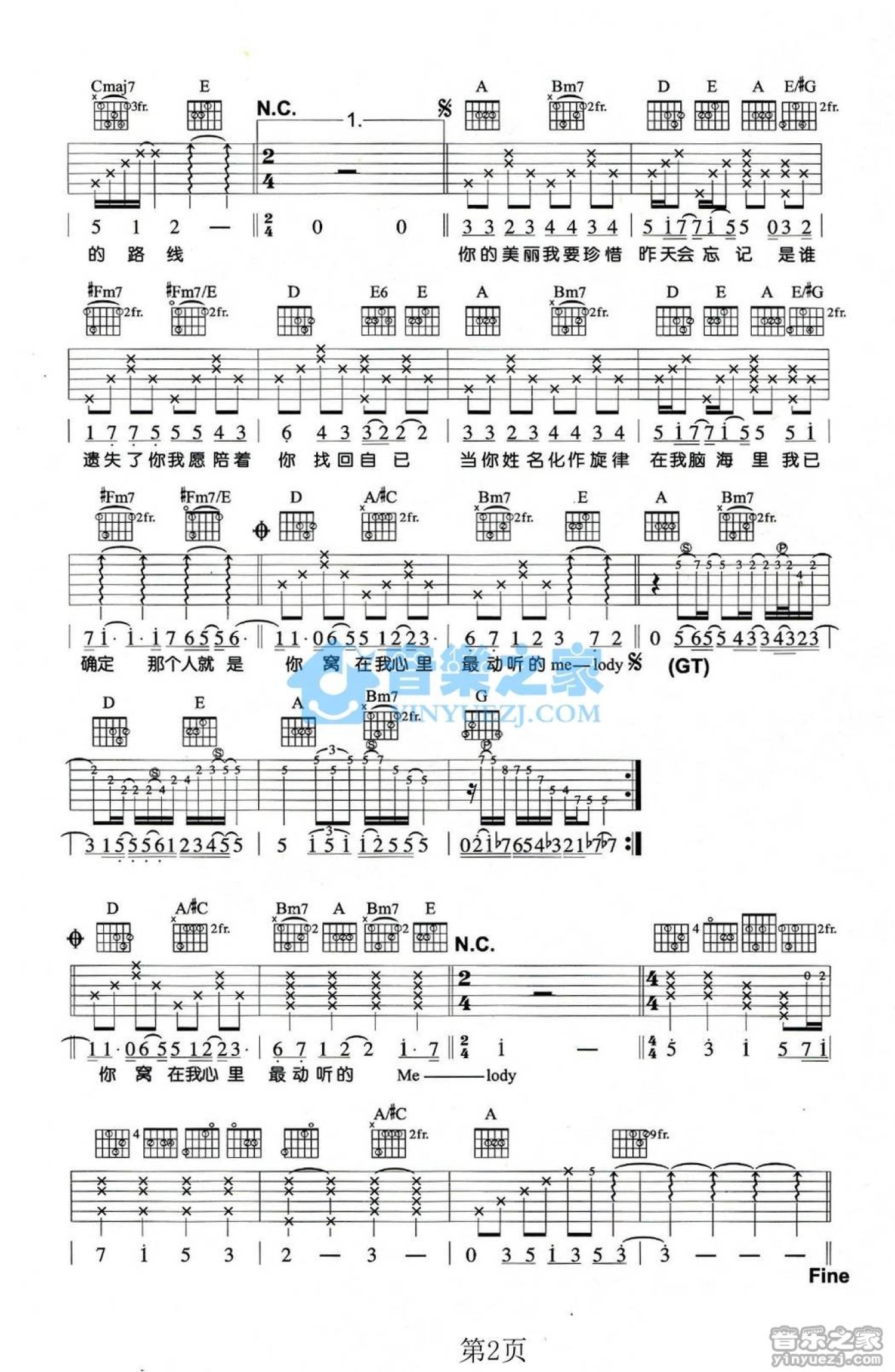 当前位置:琴谱网>吉他弹唱>旋律
