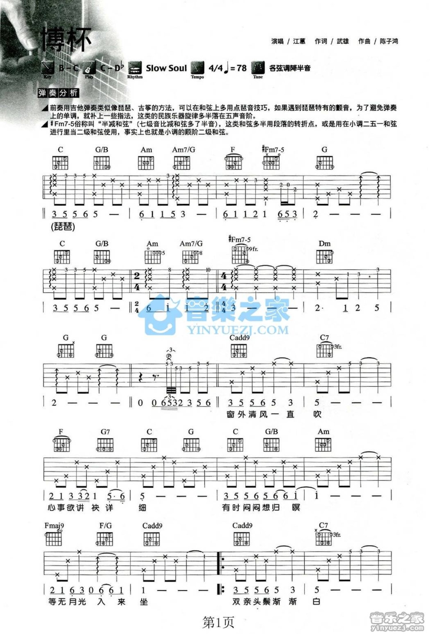曲谱介绍: C转bD调版 江蕙《博杯》吉他弹唱六线谱