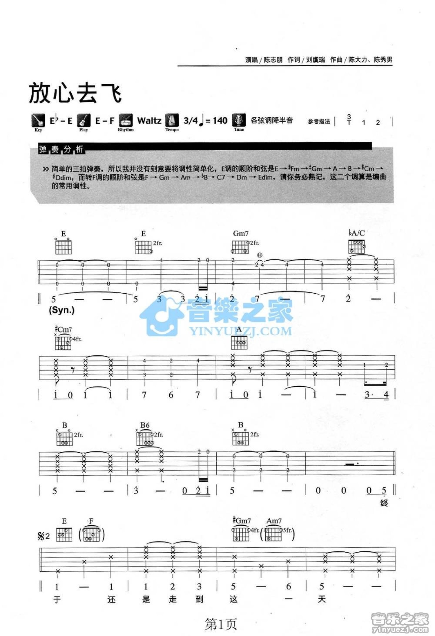 放心去飞吉他谱 - 陈志朋 - E调吉他弹唱谱