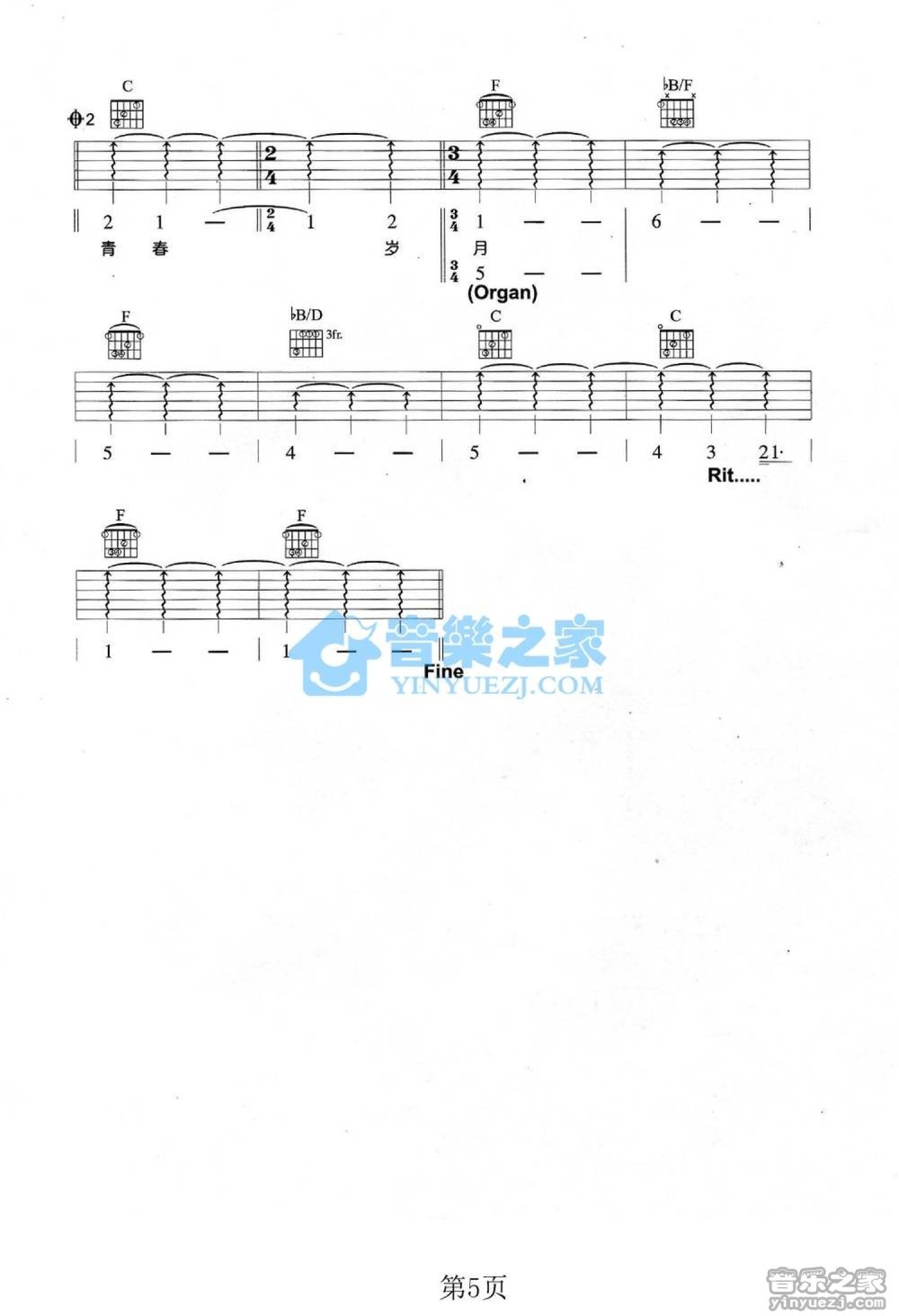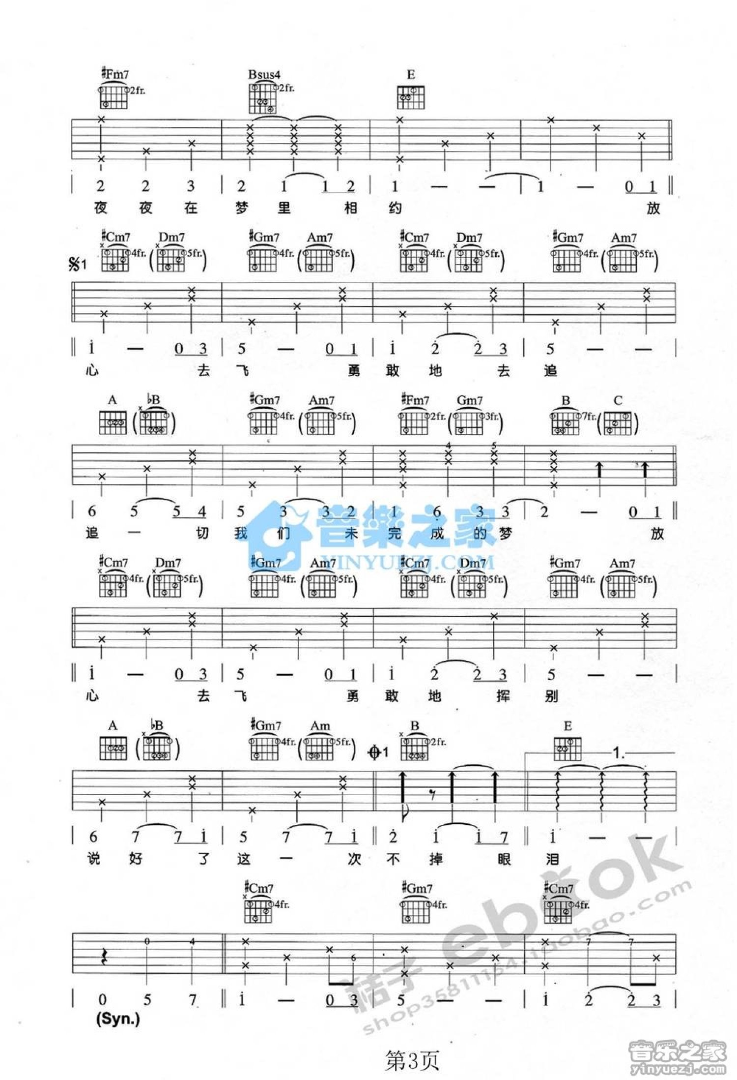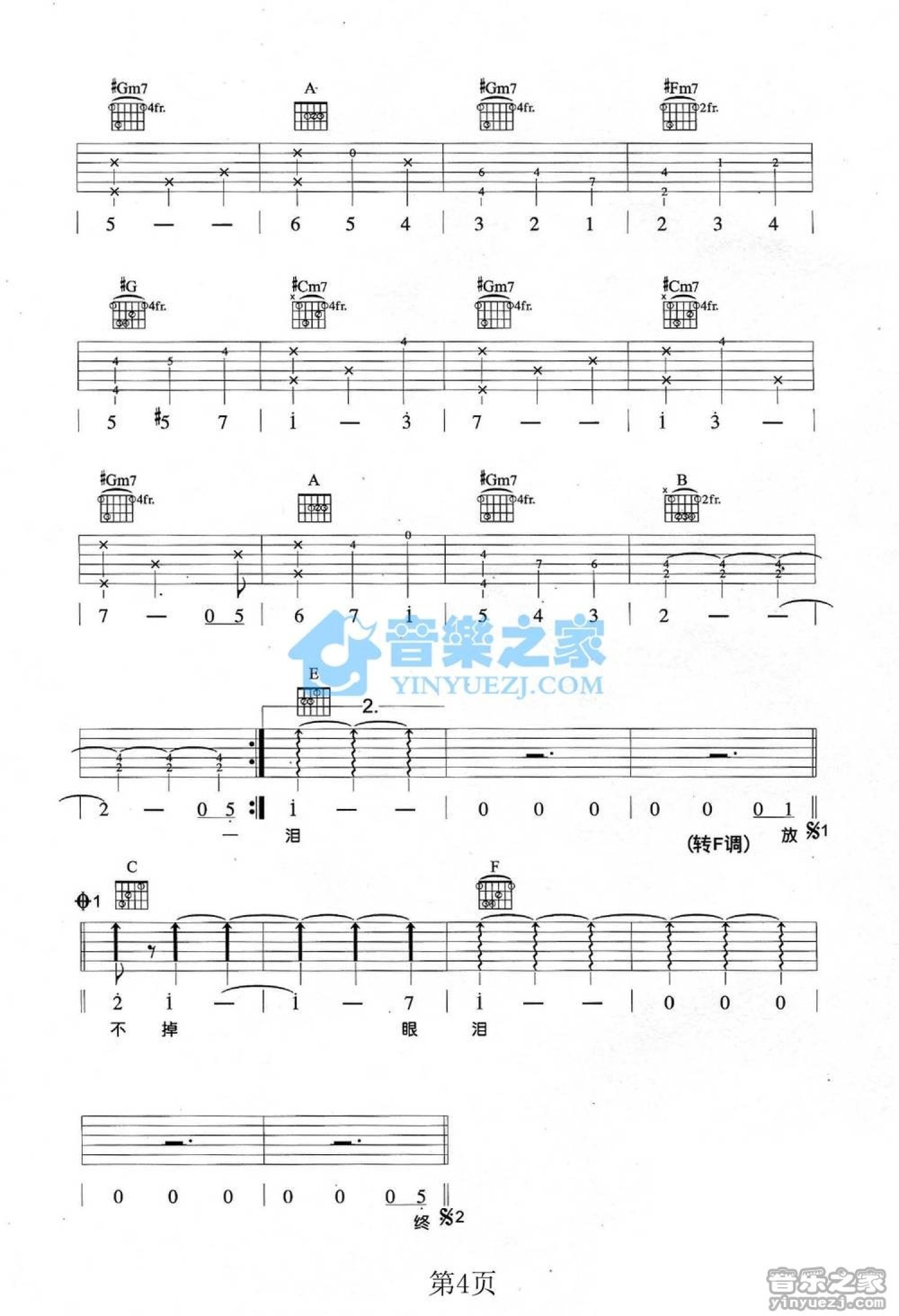 曲谱介绍: E转F调版 陈志朋《放心去飞》吉他弹唱六线谱