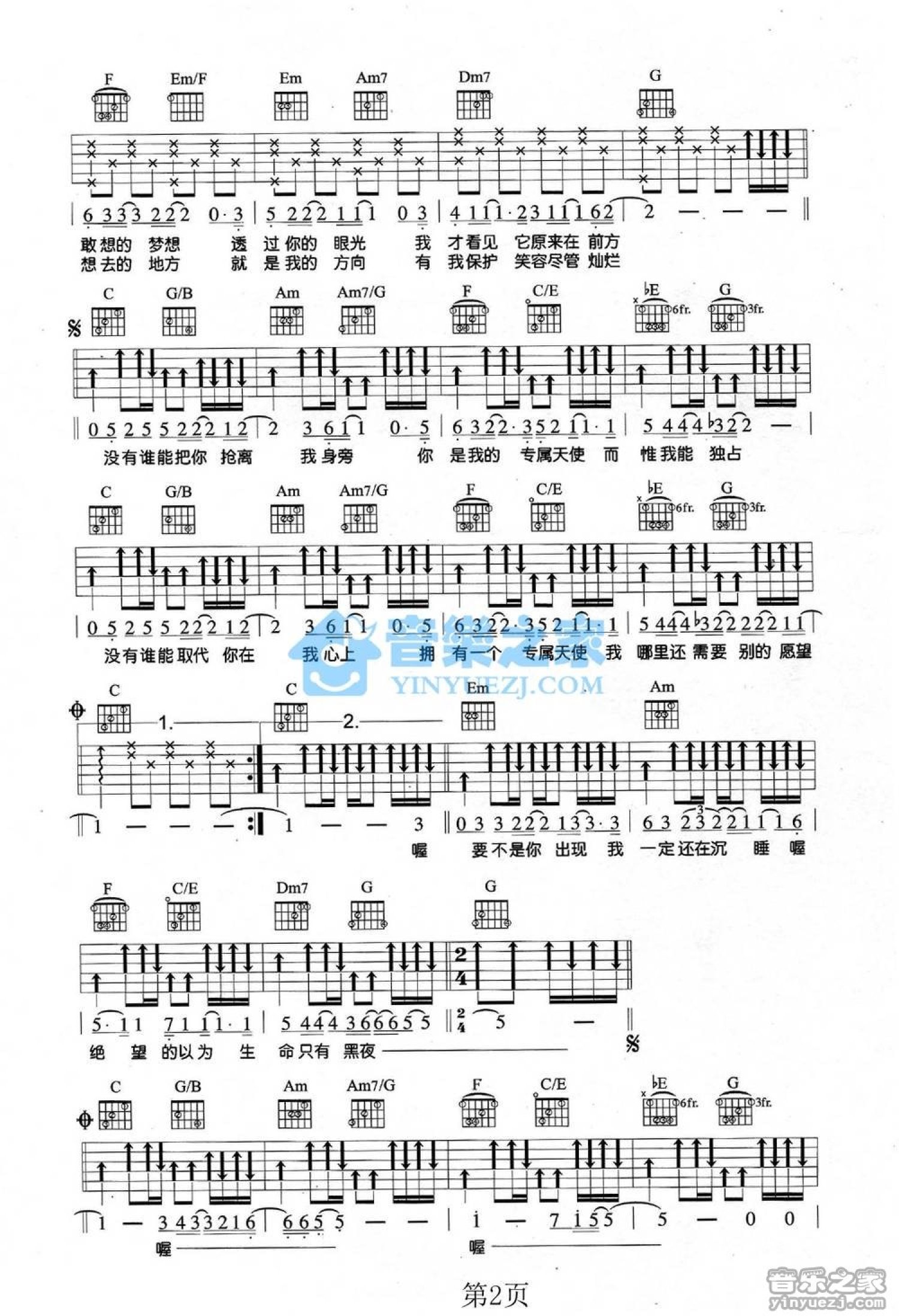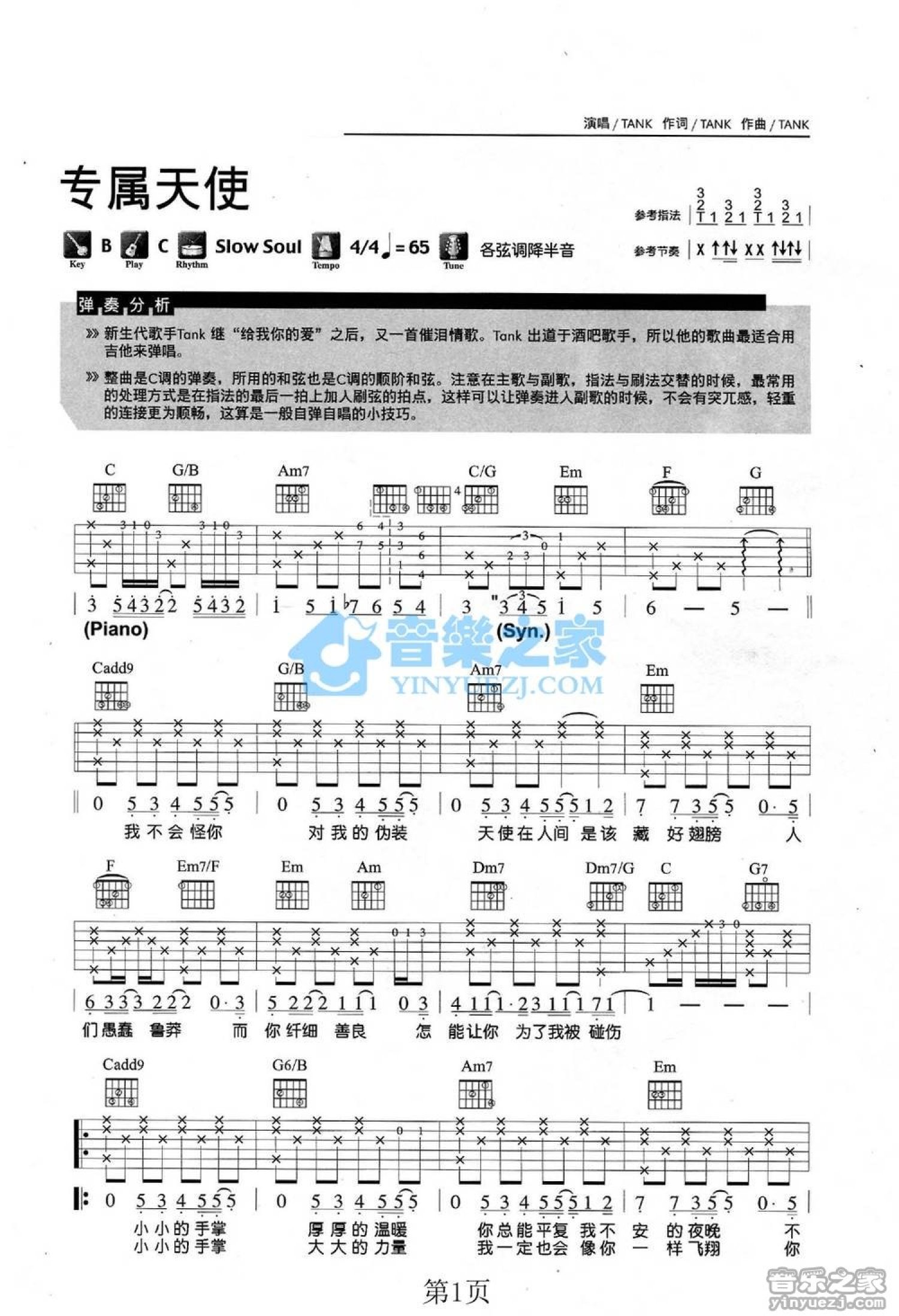 专属天使吉他谱 - Tank - C调吉他弹唱谱