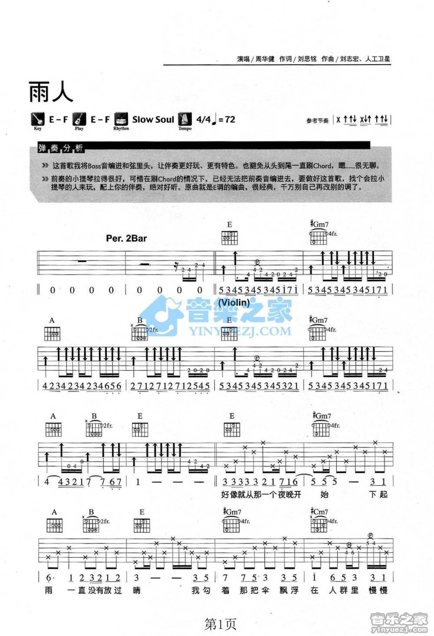 雨人吉他谱 - 周华健 - E调吉他弹唱谱