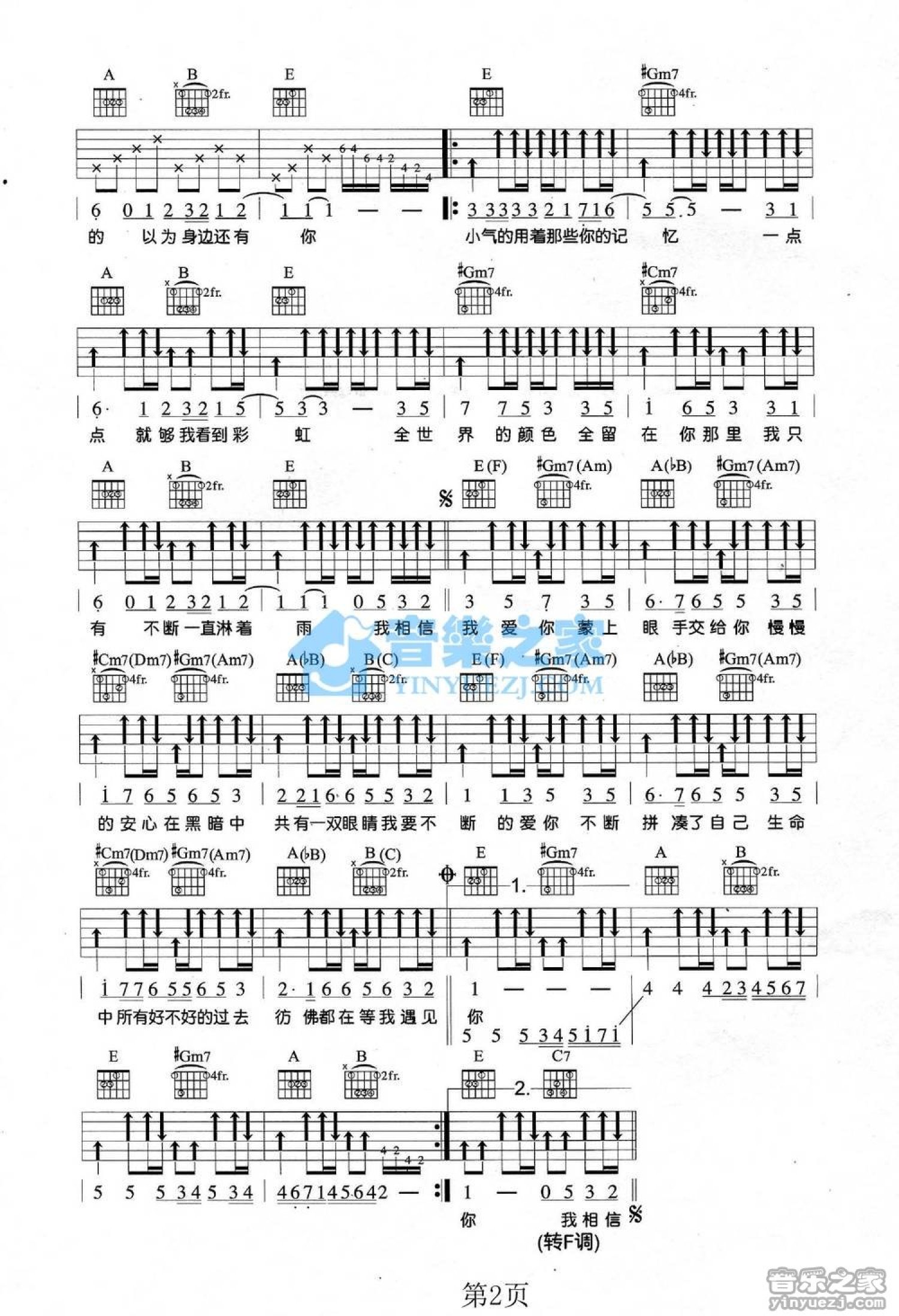 曲谱介绍: 卢家宏E转F调版 周华健《雨人》吉他弹唱六线谱