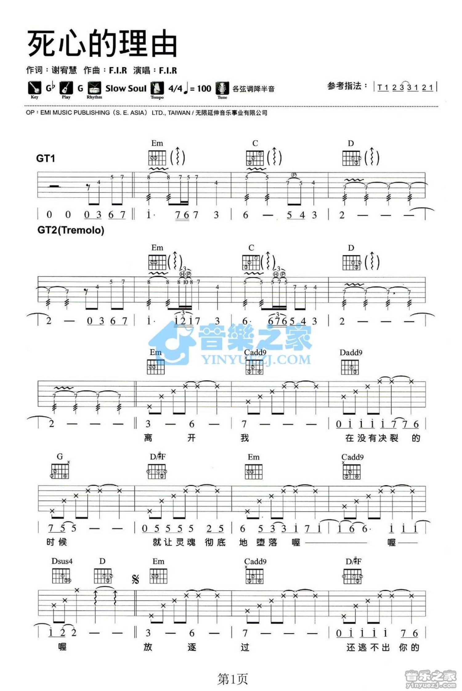 当前位置:琴谱网>吉他弹唱>死心的理由