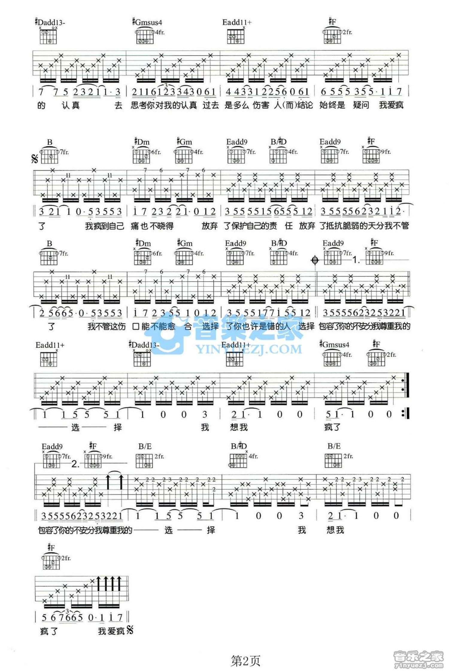 当前位置:琴谱网>吉他弹唱>爱疯了