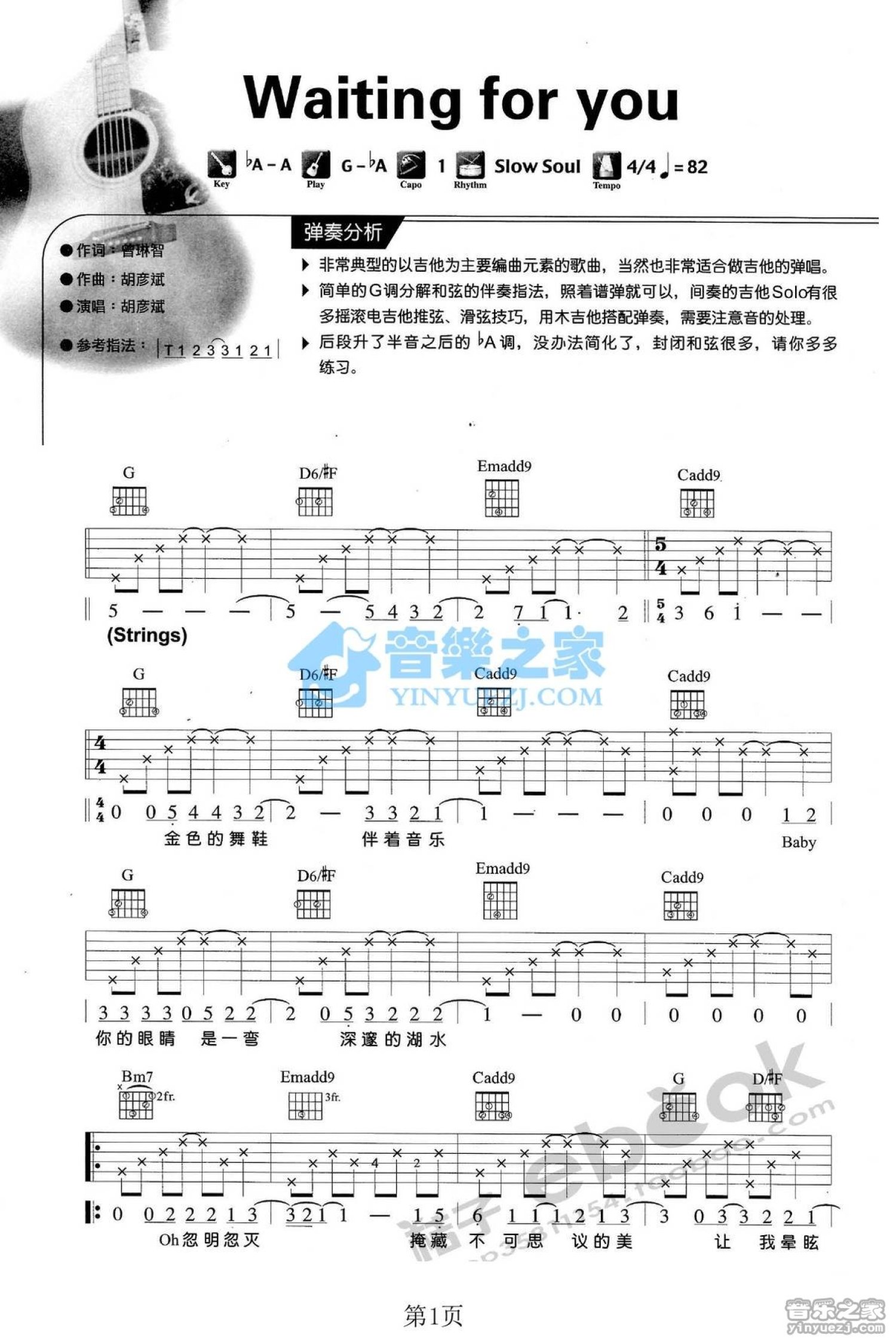 Waitting For You吉他谱 - 胡彦斌 - G调吉他弹唱谱