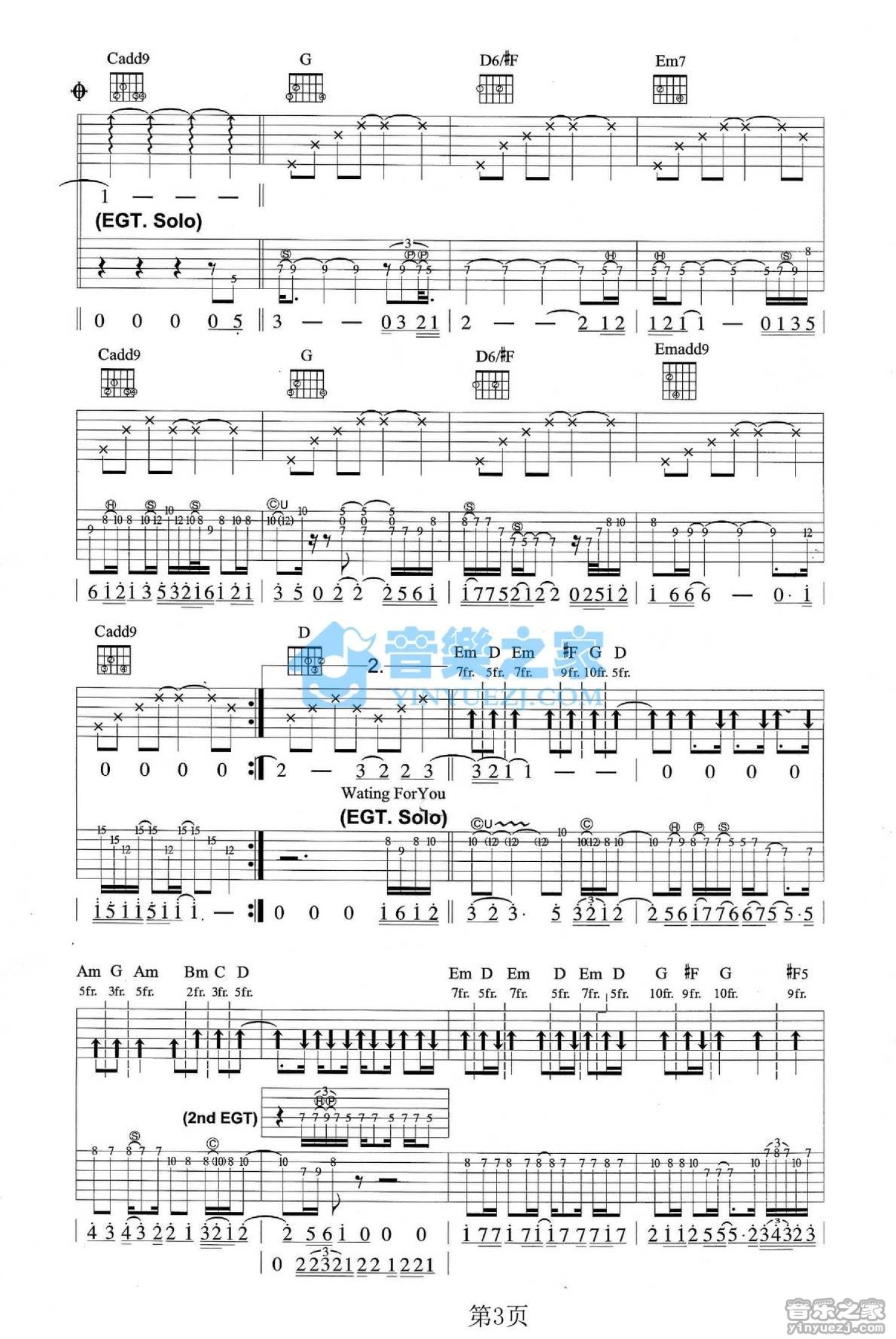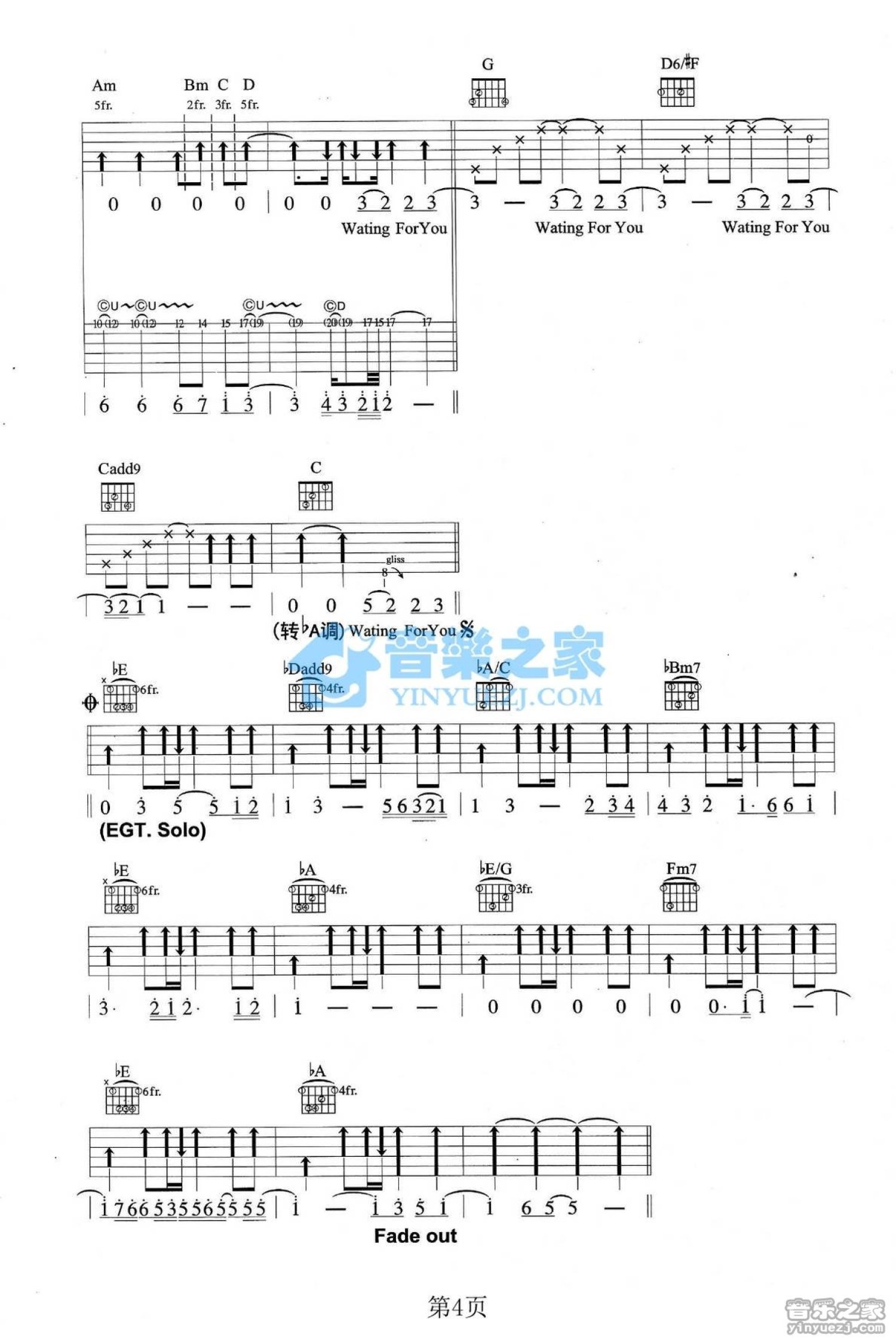 当前位置:琴谱网>吉他弹唱>Waitting For You