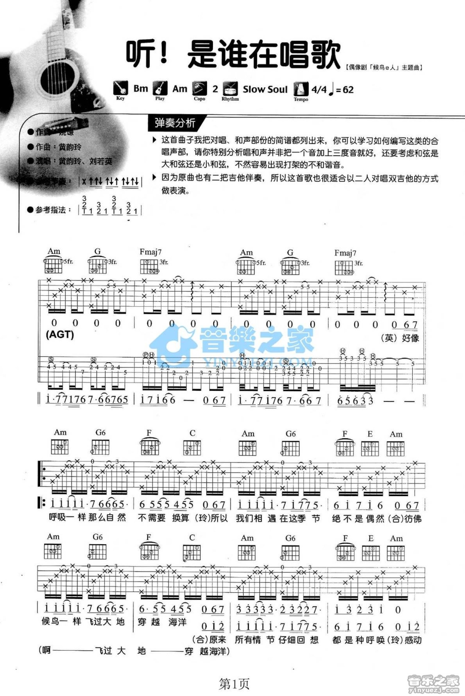 当前位置:琴谱网>吉他弹唱>听是谁在唱歌