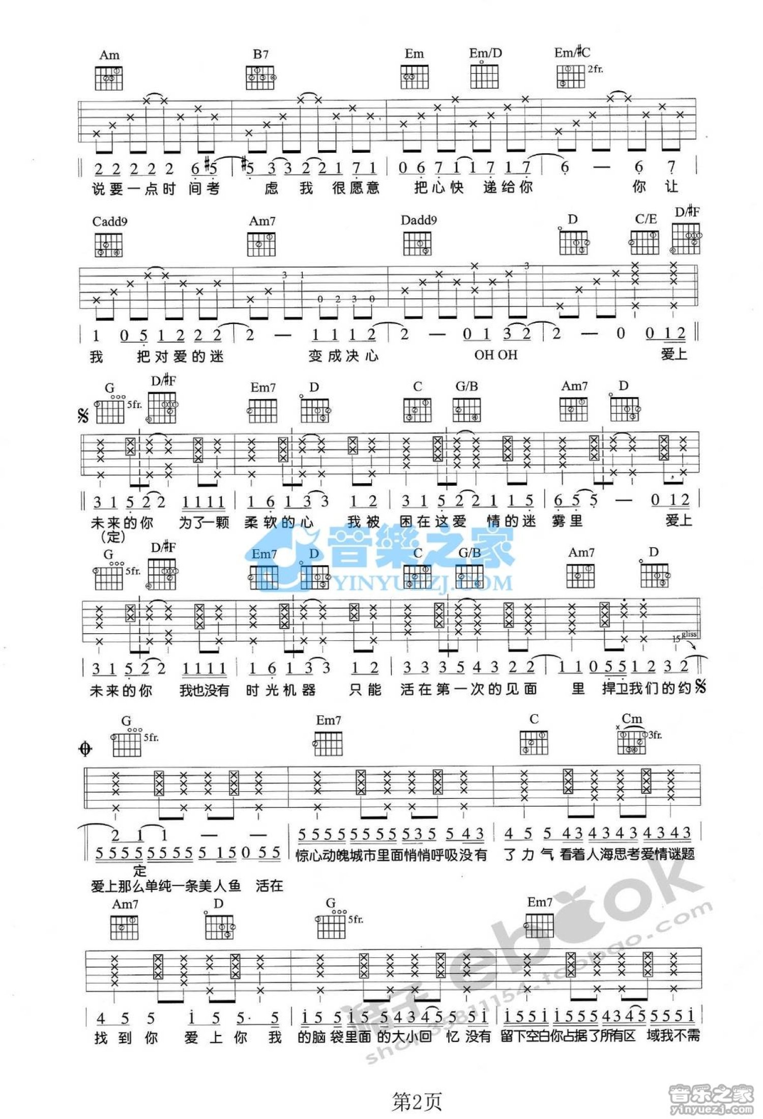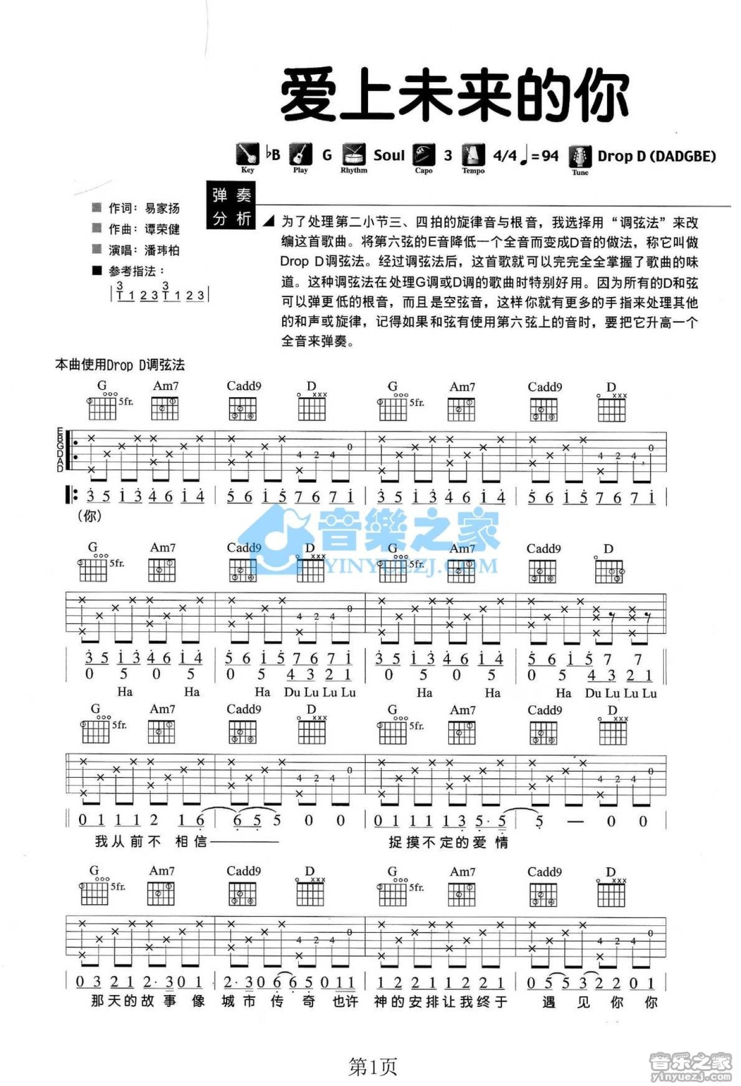 曲谱介绍: G调版《爱上未来的你》吉他弹唱六线谱