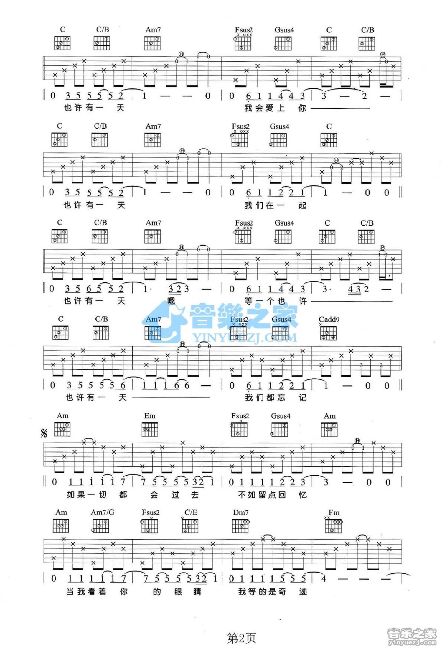 也许有一天吉他谱 - JS - C调吉他弹唱谱