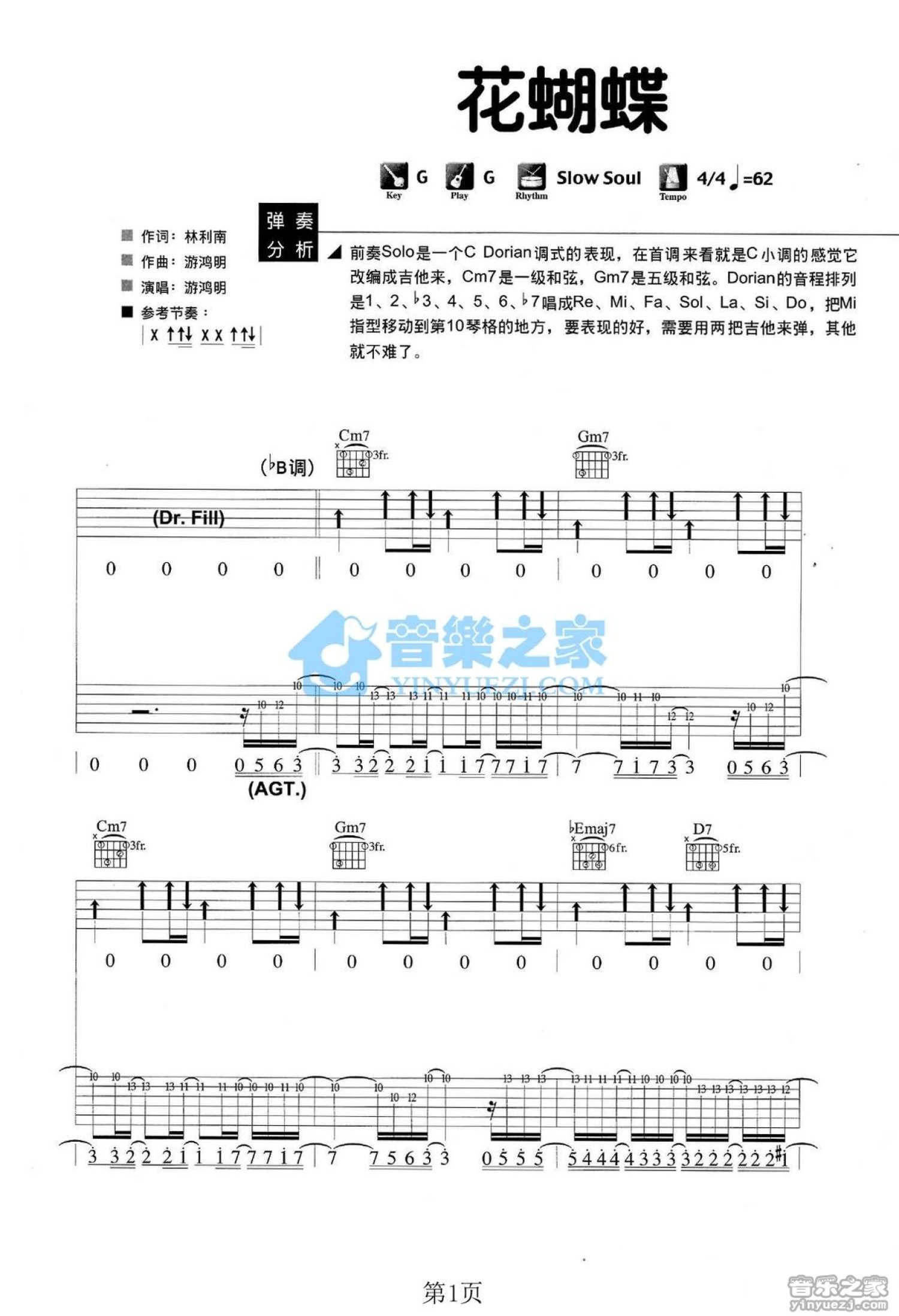 曲谱介绍: G调版 游鸿明《花蝴蝶》吉他弹唱六线谱