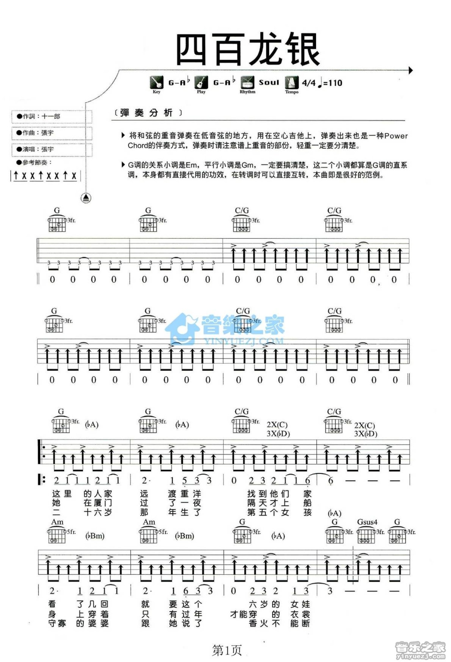 当前位置:琴谱网>吉他弹唱>四百龙银