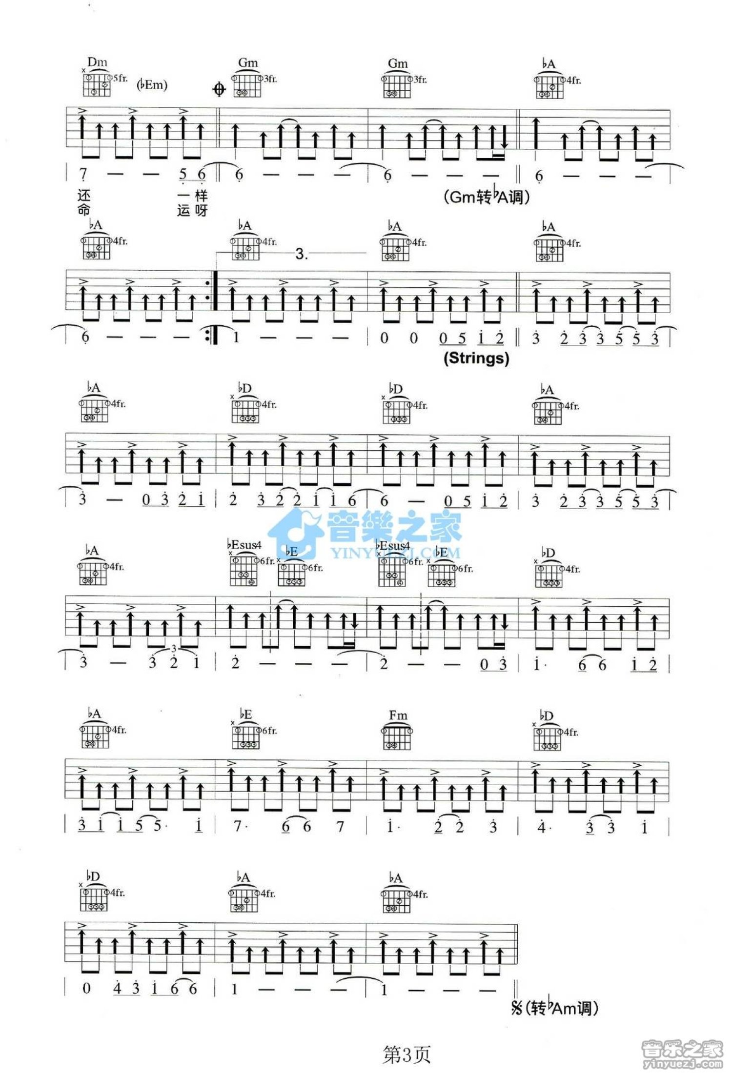 曲谱介绍: 卢家宏G转bA调版 张宇《四百龙银》吉他弹唱六线谱