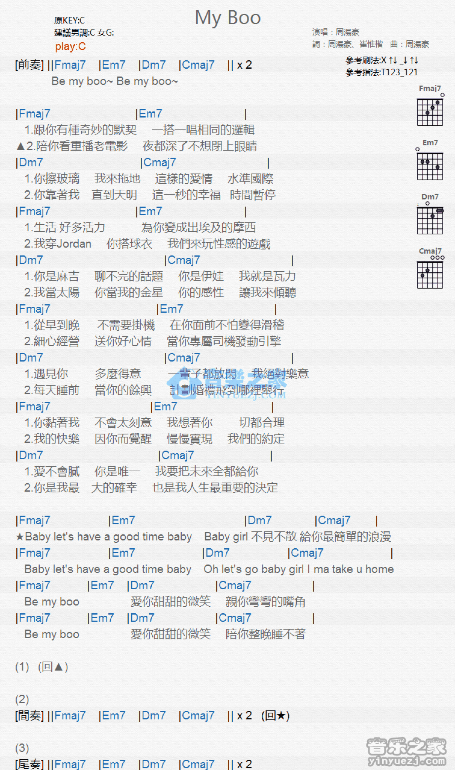 My Boo吉他谱 - 周汤豪 - C调吉他弹唱谱 - 和弦谱