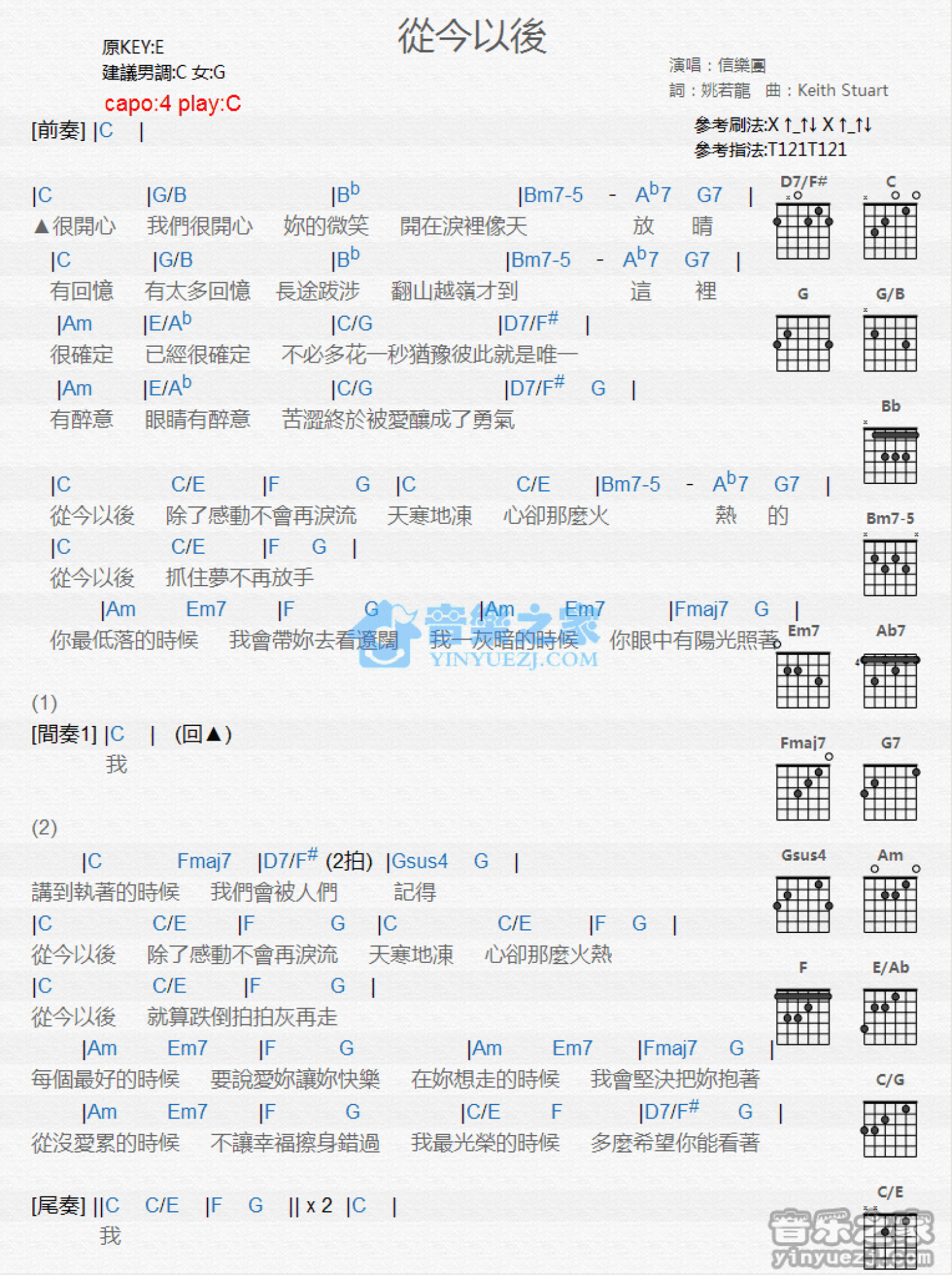曲谱介绍: C调版 信乐团《从今以后》吉他和弦弹唱谱