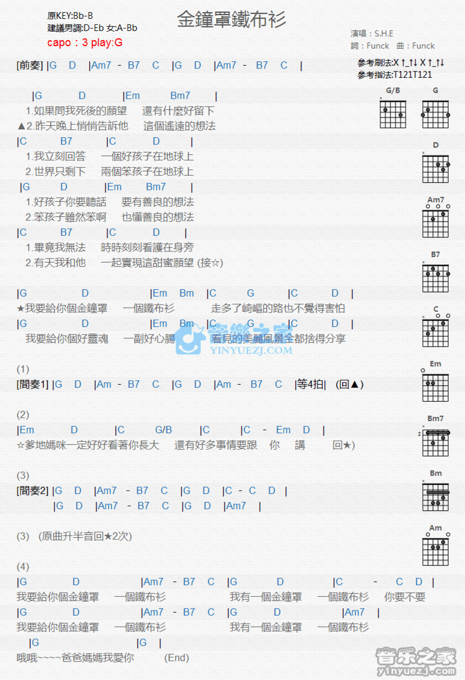 金钟罩铁布衫吉他谱 - S.H.E - G调吉他弹唱谱 - 和弦谱