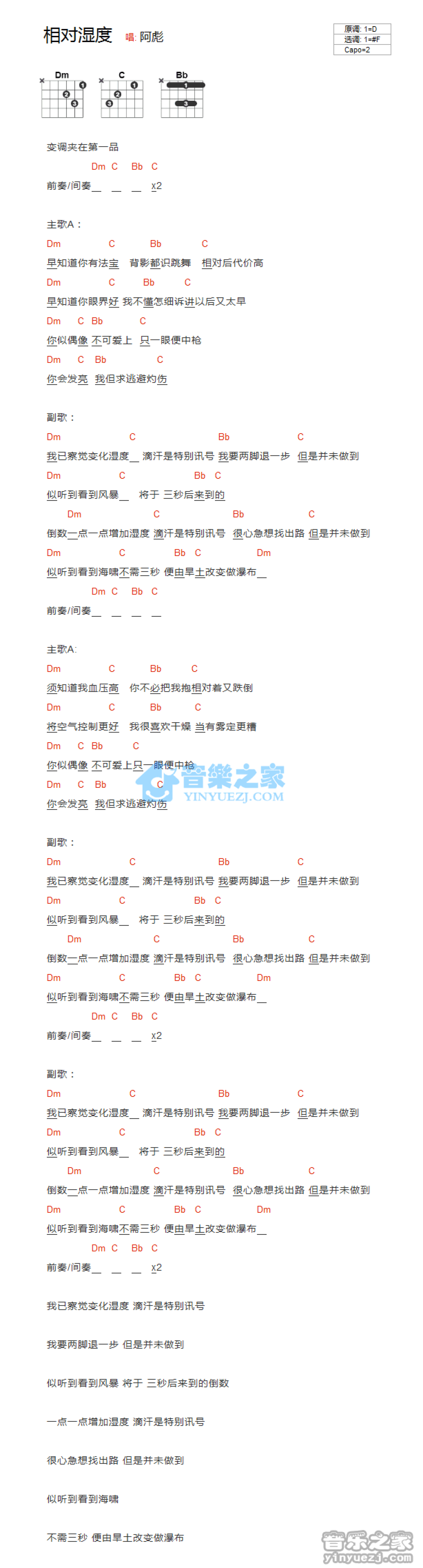 当前位置:琴谱网>吉他弹唱>相对湿度