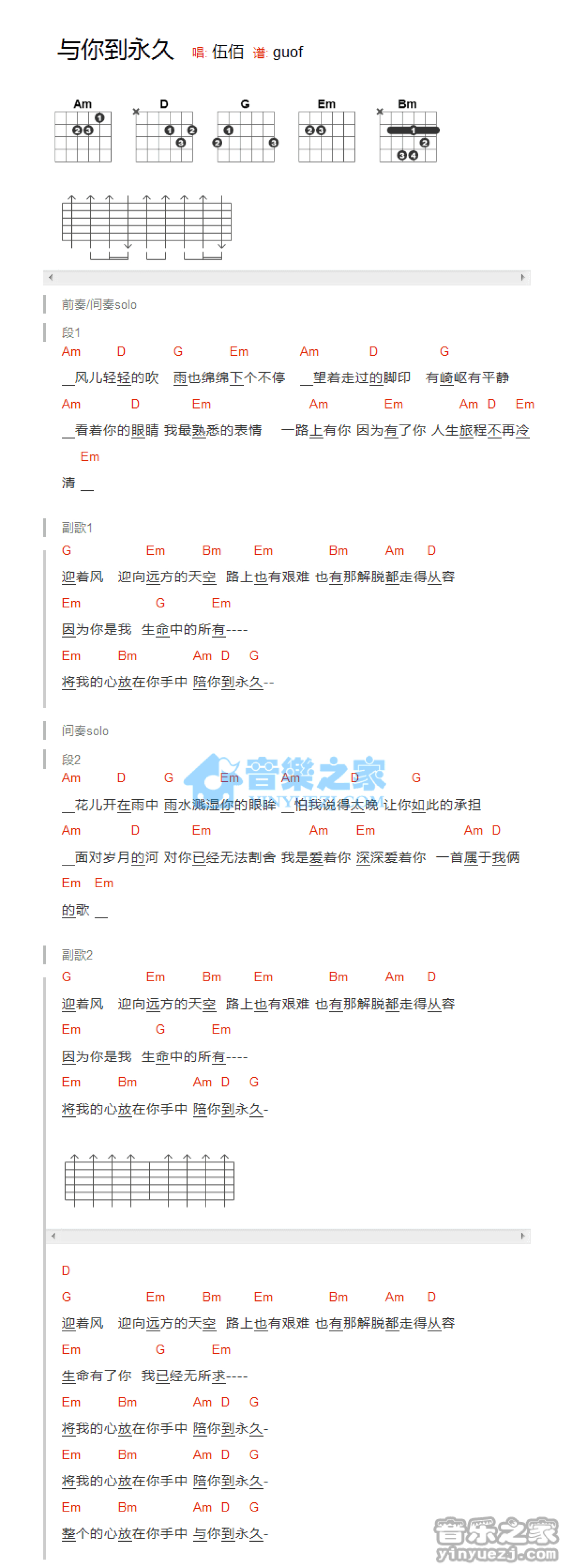 曲谱介绍: 《与你到永久》吉他和弦弹唱谱