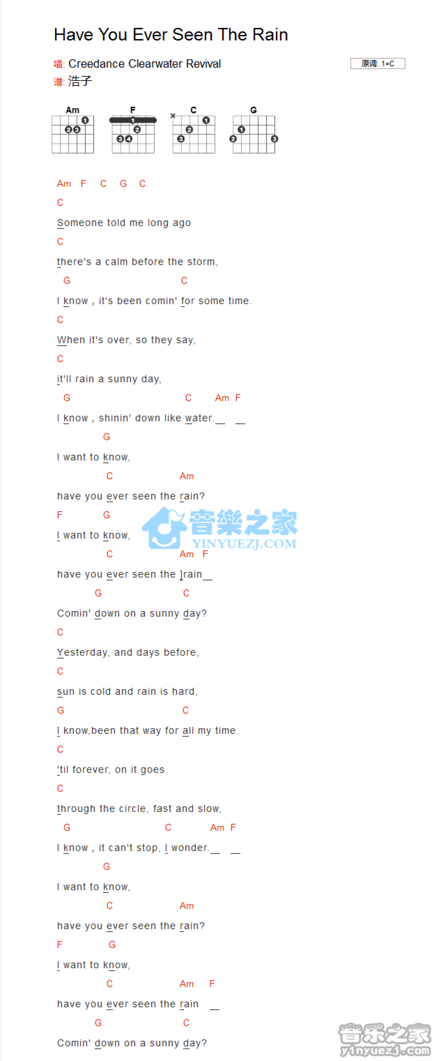 Have you ever seen the rain吉他谱 - C调吉他弹唱谱 - 和弦谱