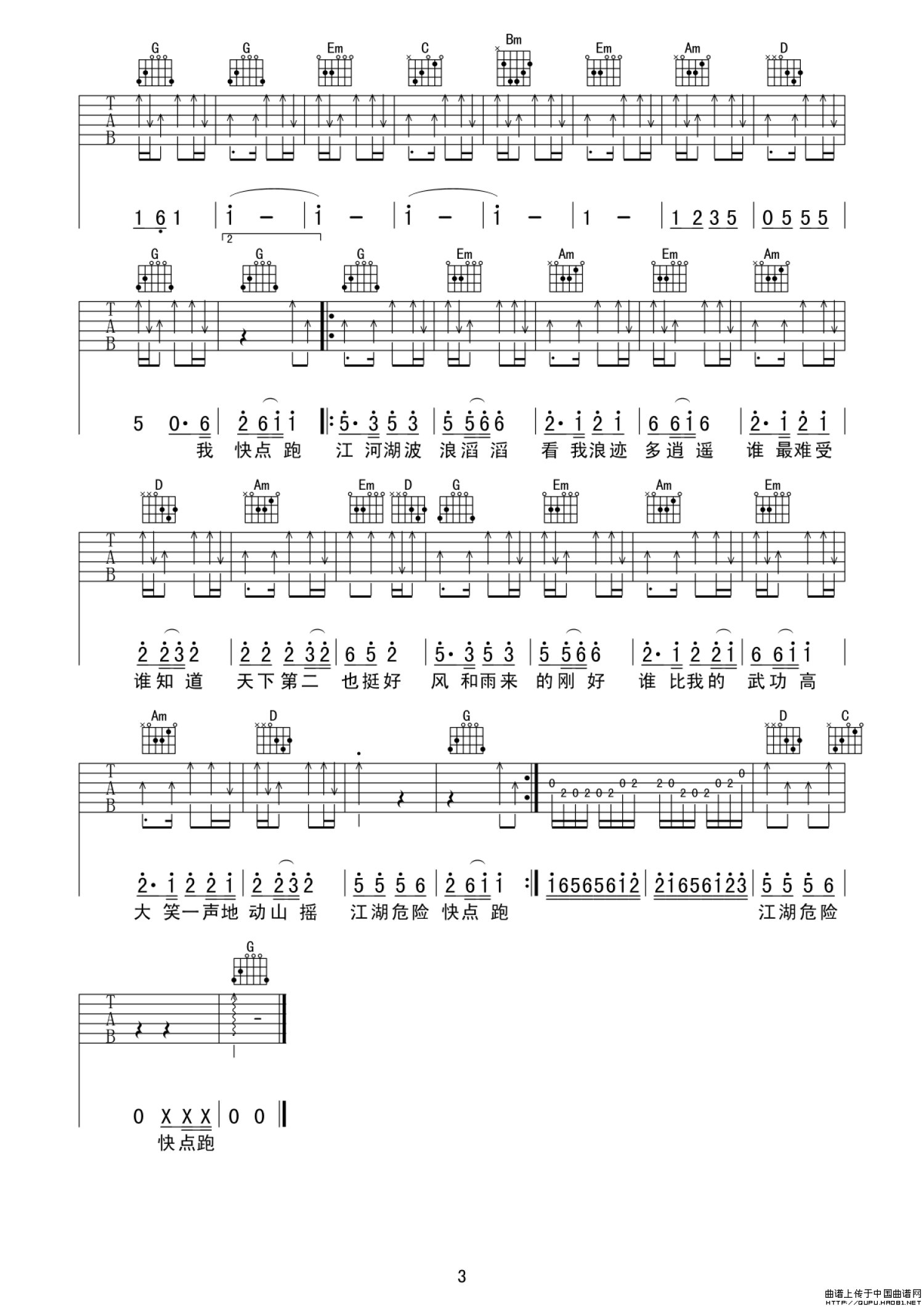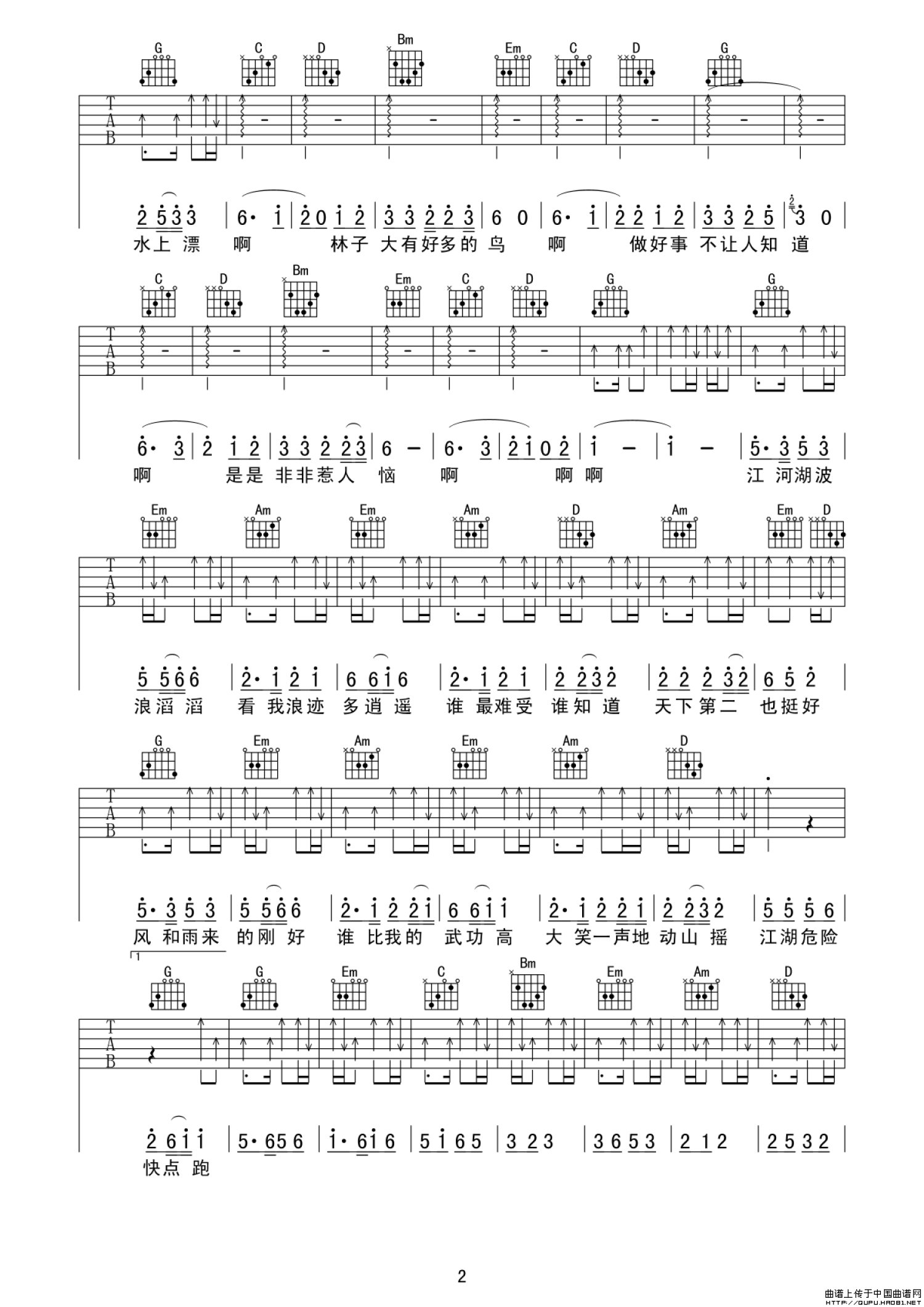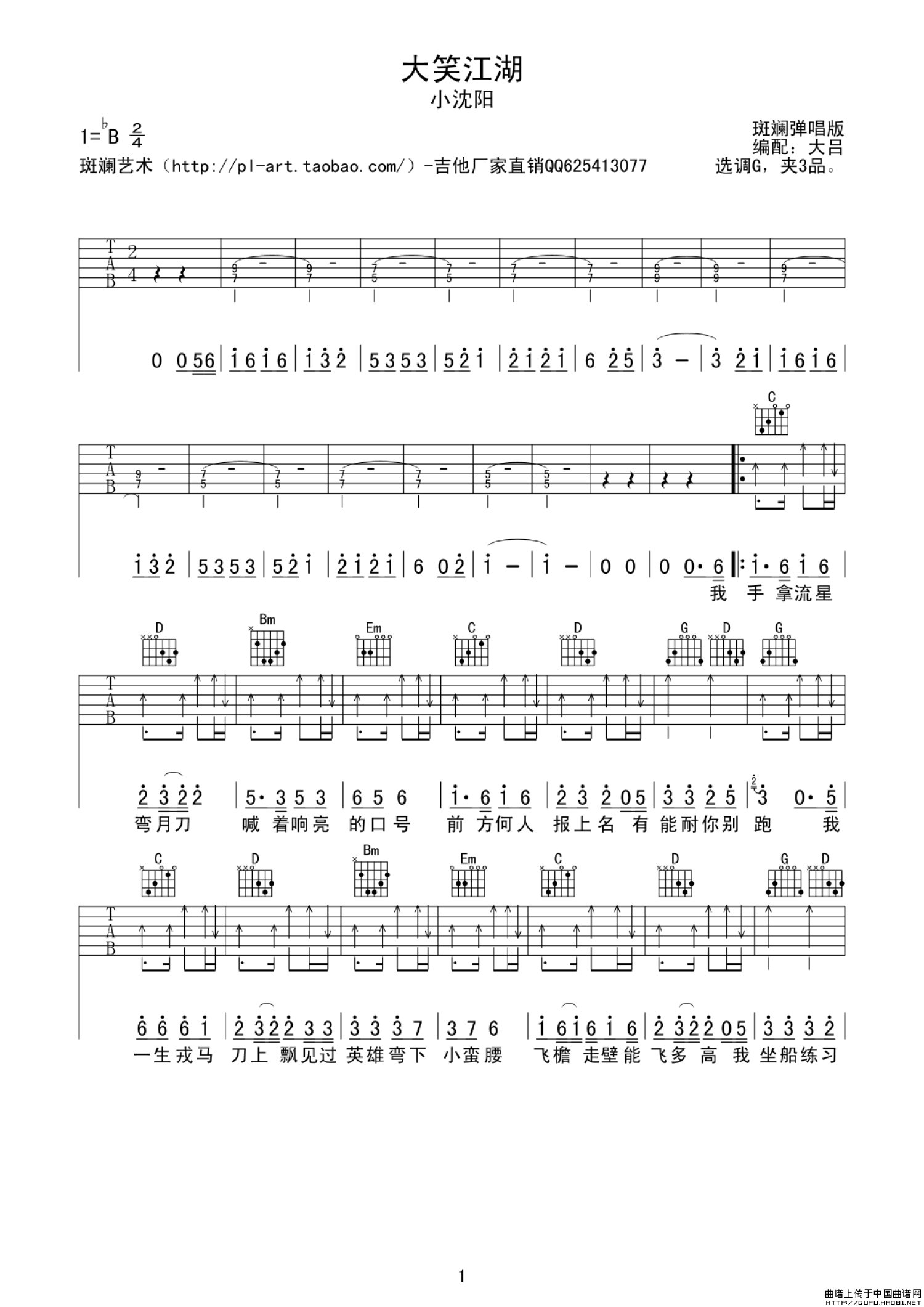 曲谱介绍: 斑斓G调原版小沈阳《大笑江湖》吉他弹唱六线谱
