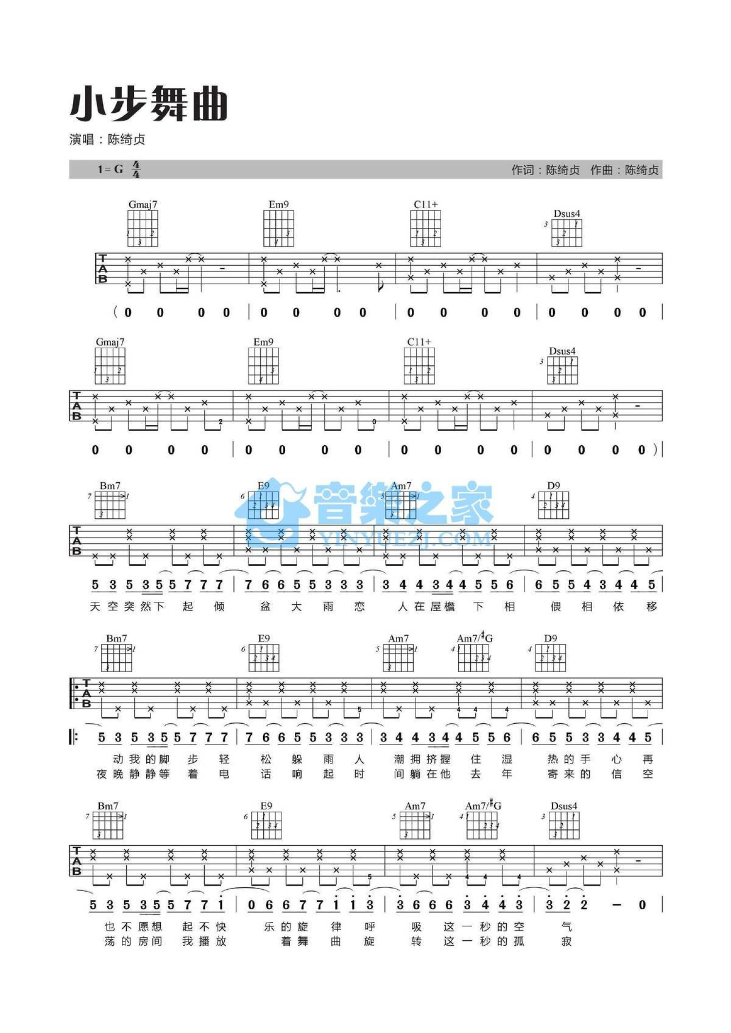 小步舞曲吉他谱 - 陈绮贞 - G调吉他弹唱谱