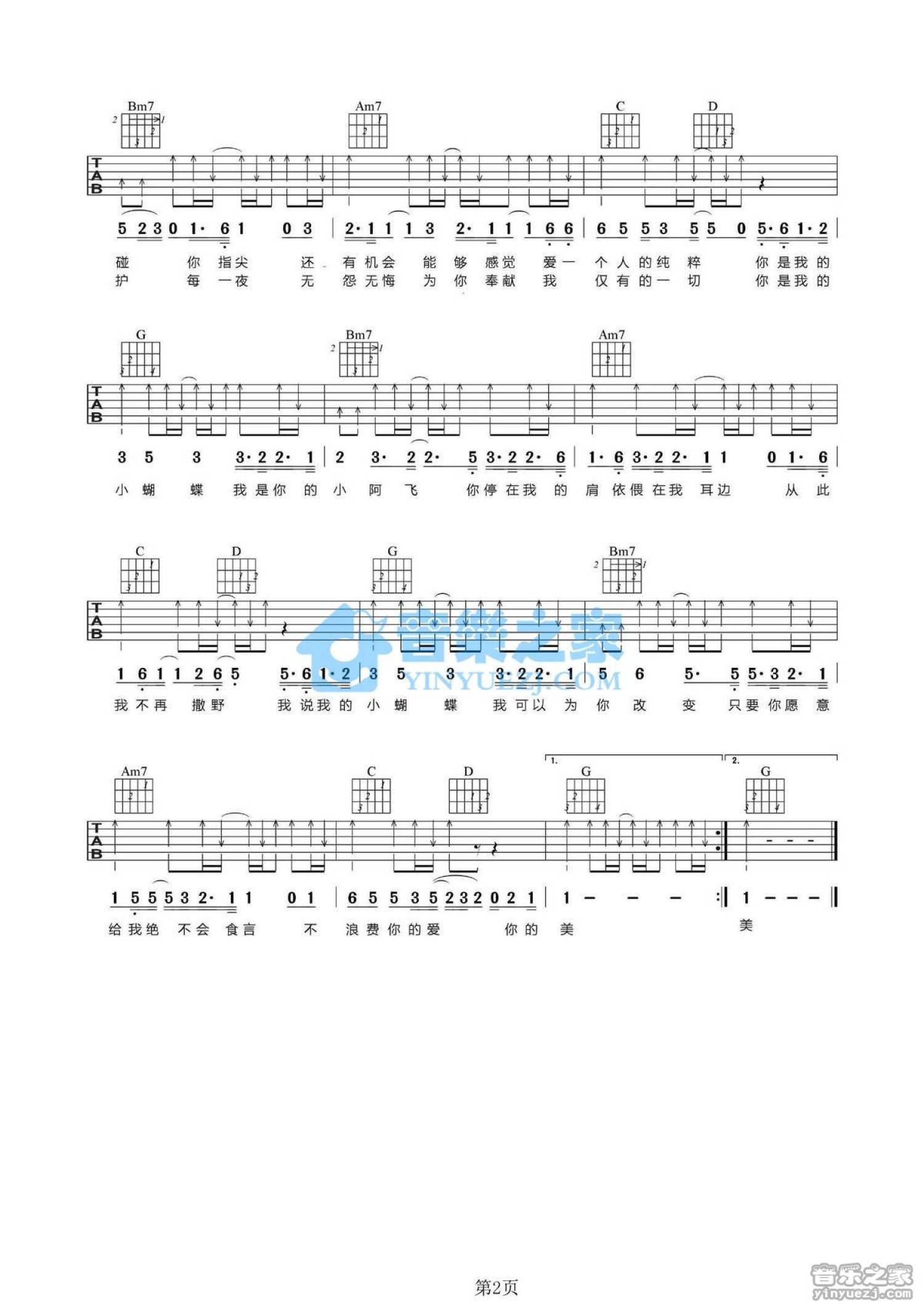 琴谱网为您精心推荐 阿飞的小蝴蝶 高清图谱