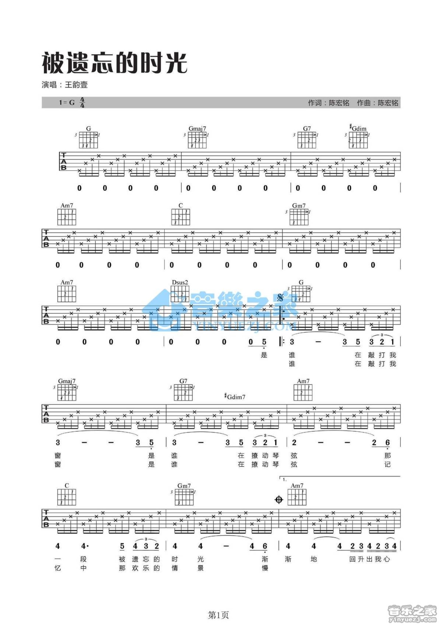 被遗忘的时光吉他谱 - 王韵壹 - G调吉他弹唱谱