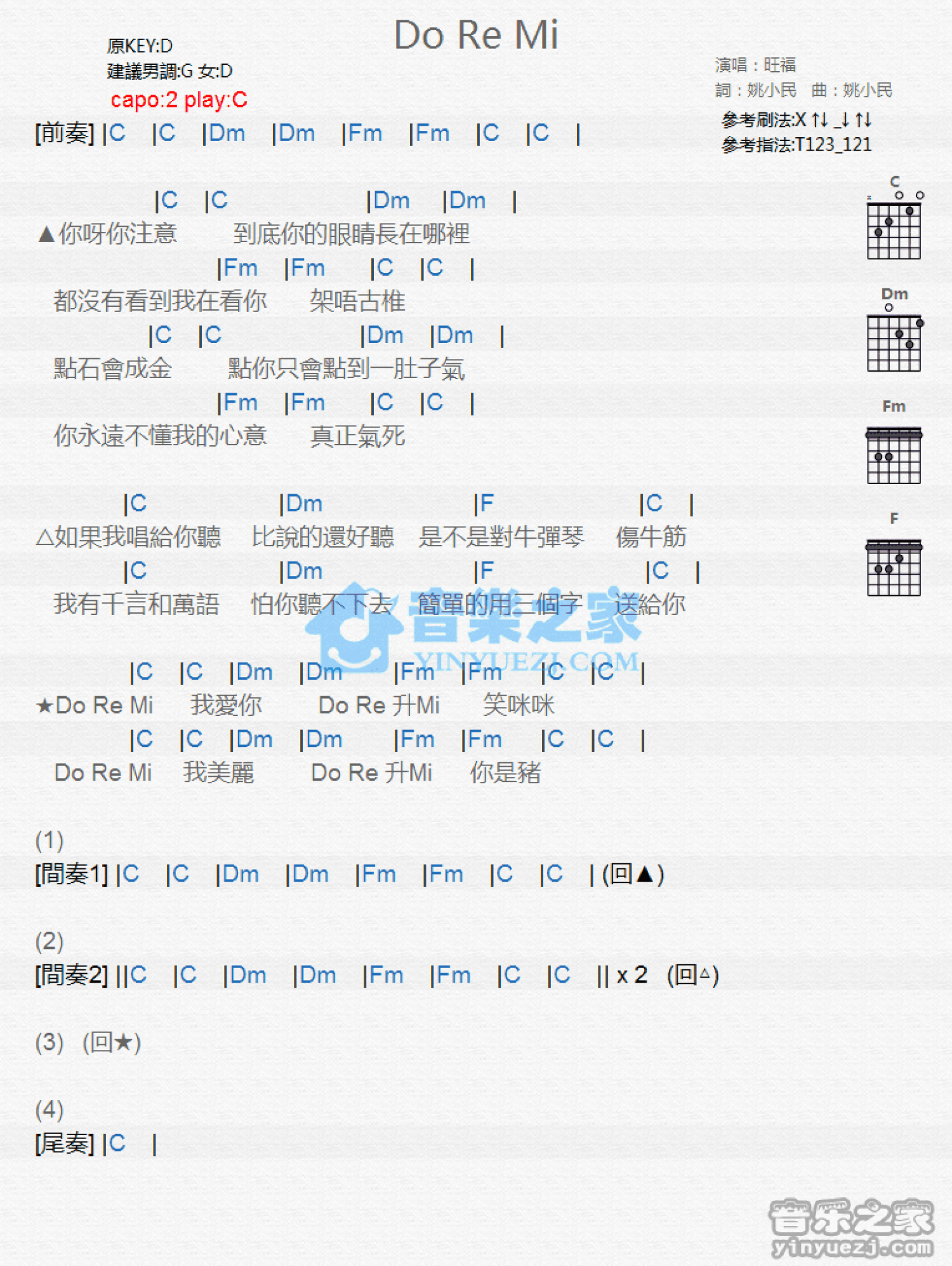 Do Re Mi吉他谱 - 旺福 - C调吉他弹唱谱 - 和弦谱
