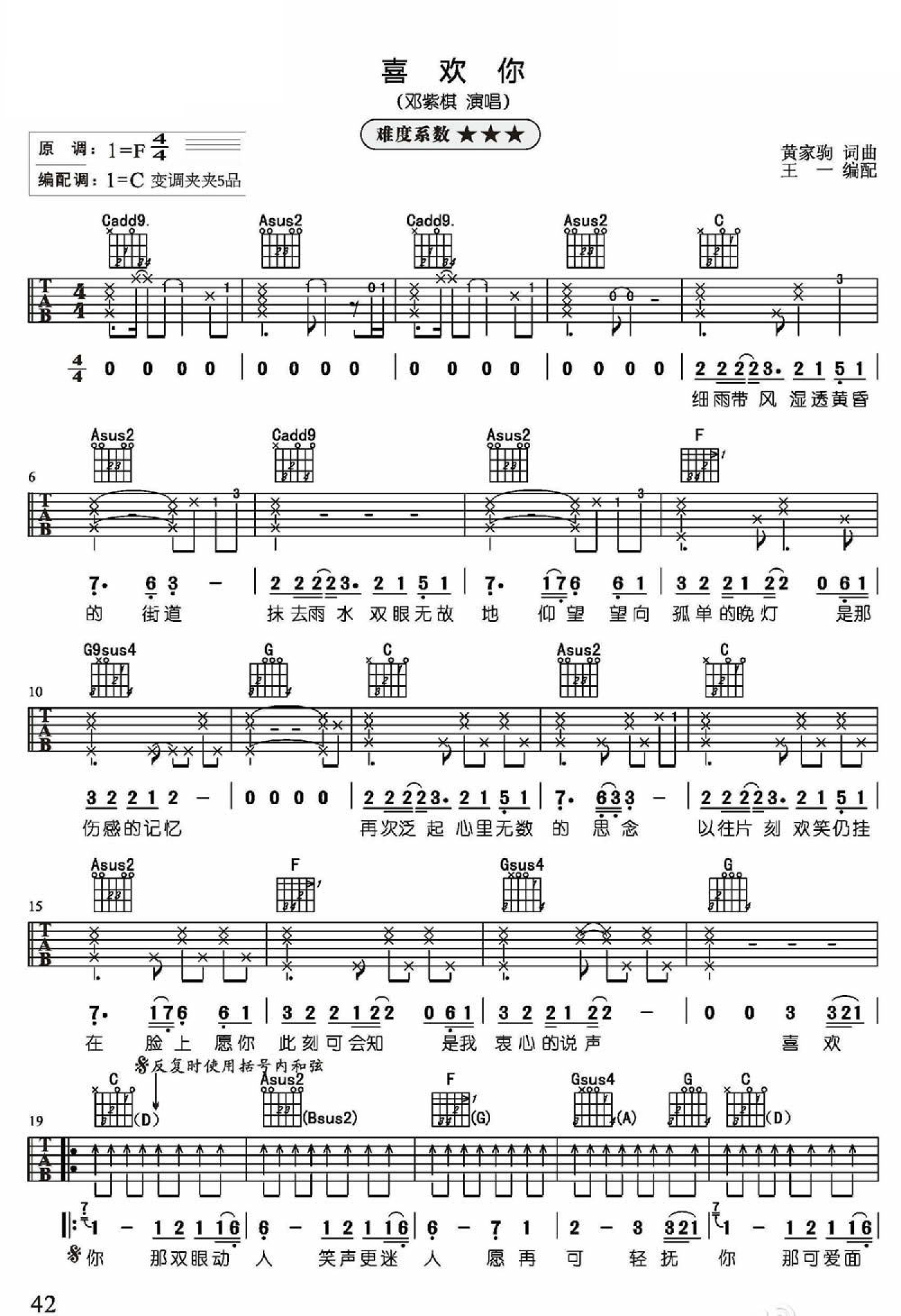 当前位置:琴谱网>吉他弹唱>喜欢你