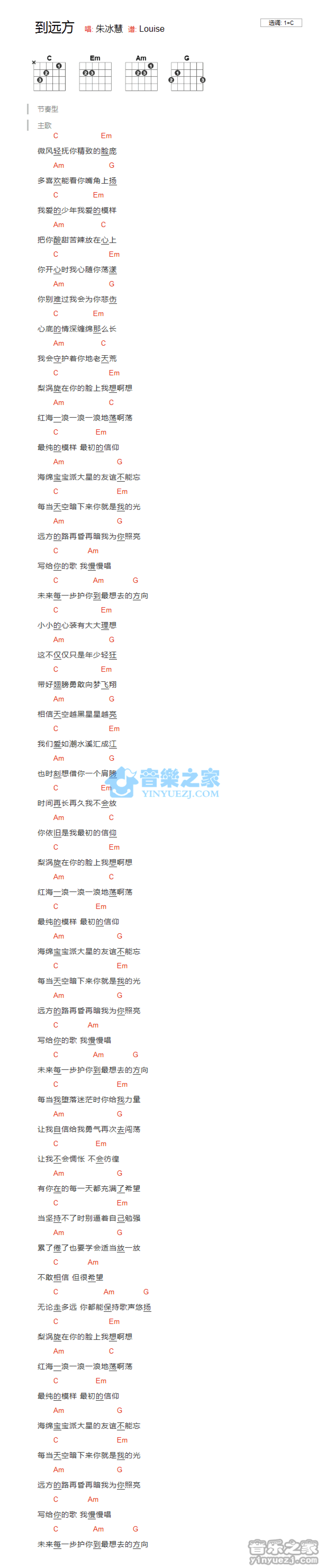 到远方吉他谱 - 朱冰慧 - C调吉他弹唱谱 - 和弦谱