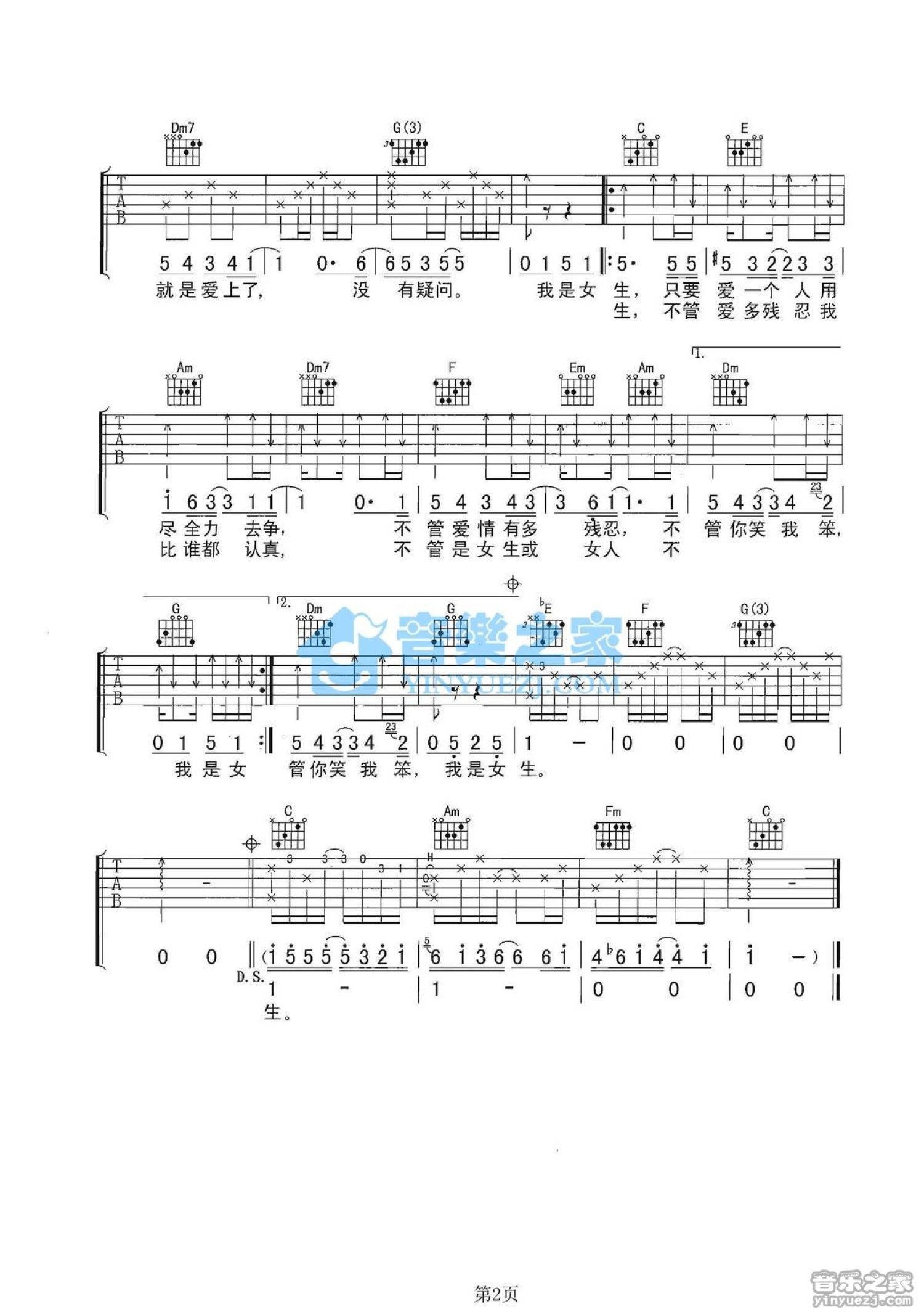 当前位置:琴谱网>吉他弹唱>女生