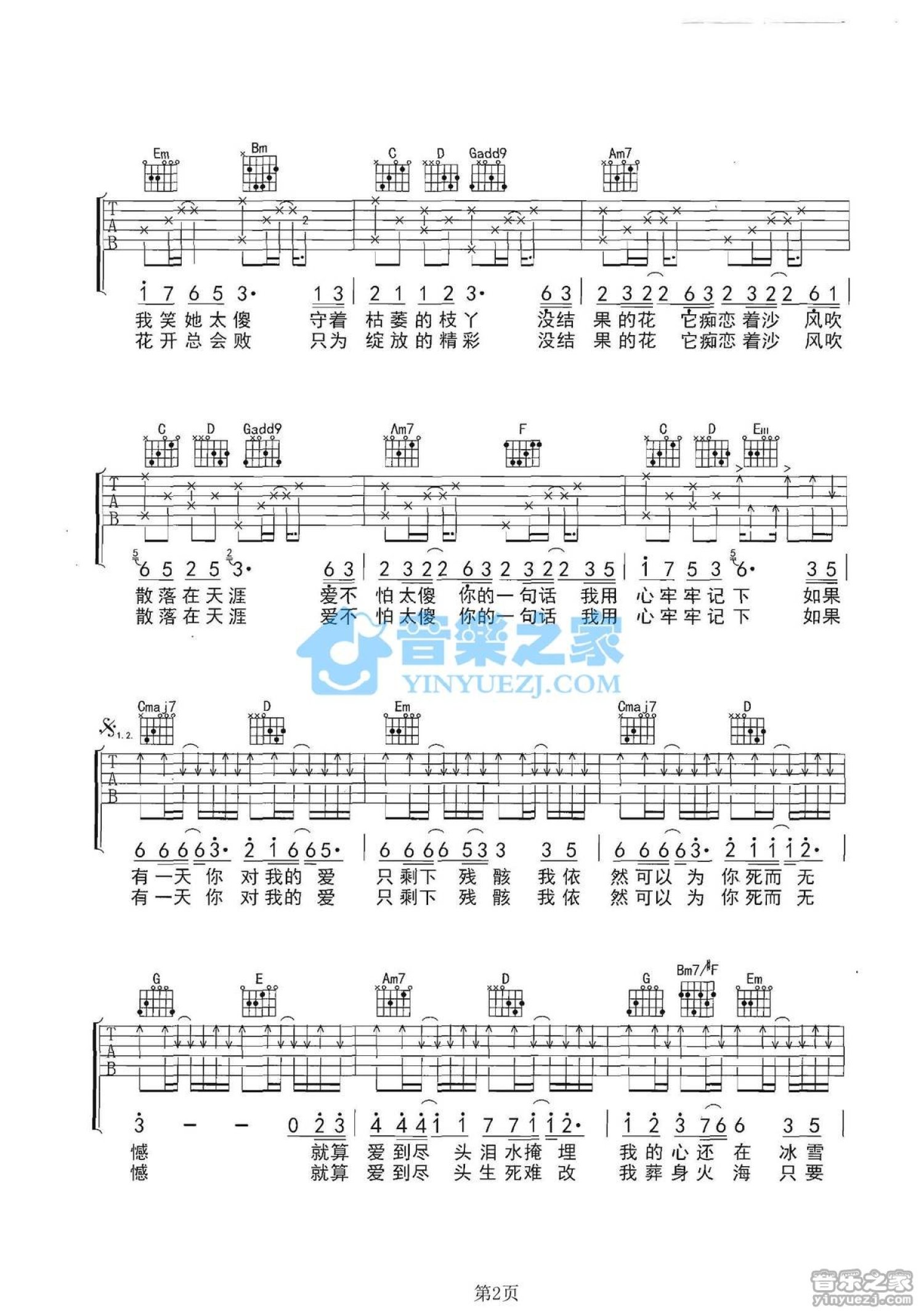当前位置:琴谱网>吉他弹唱>死而无憾