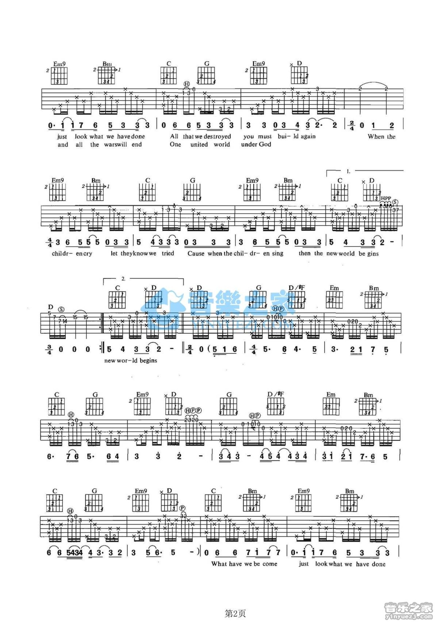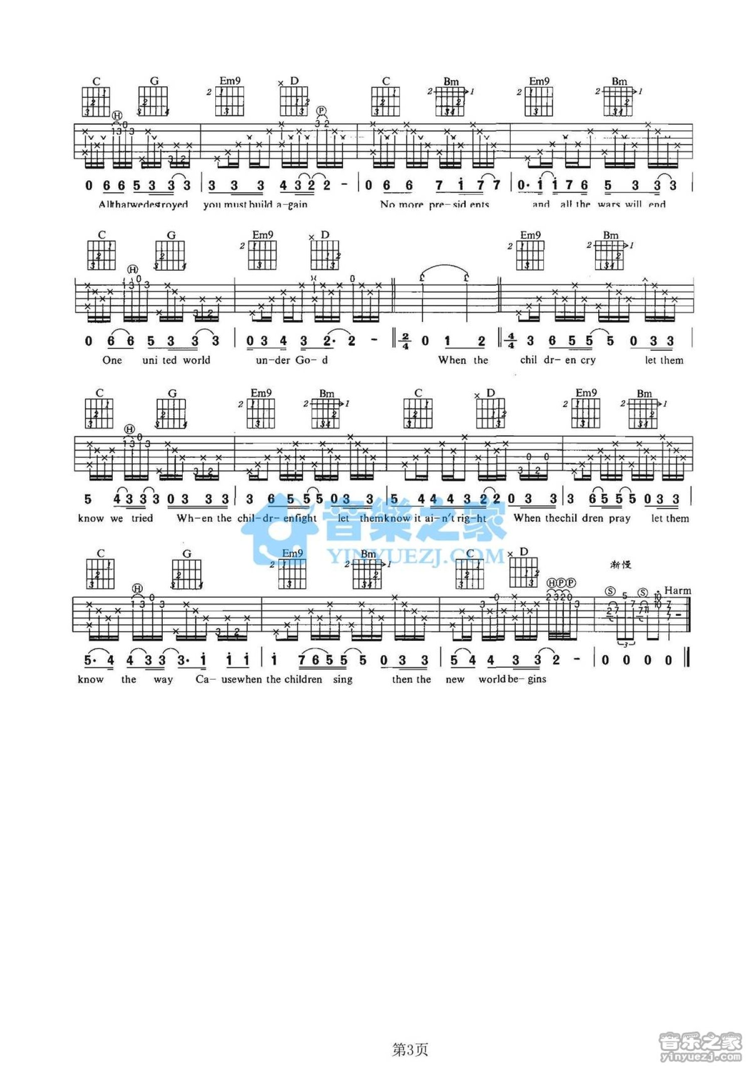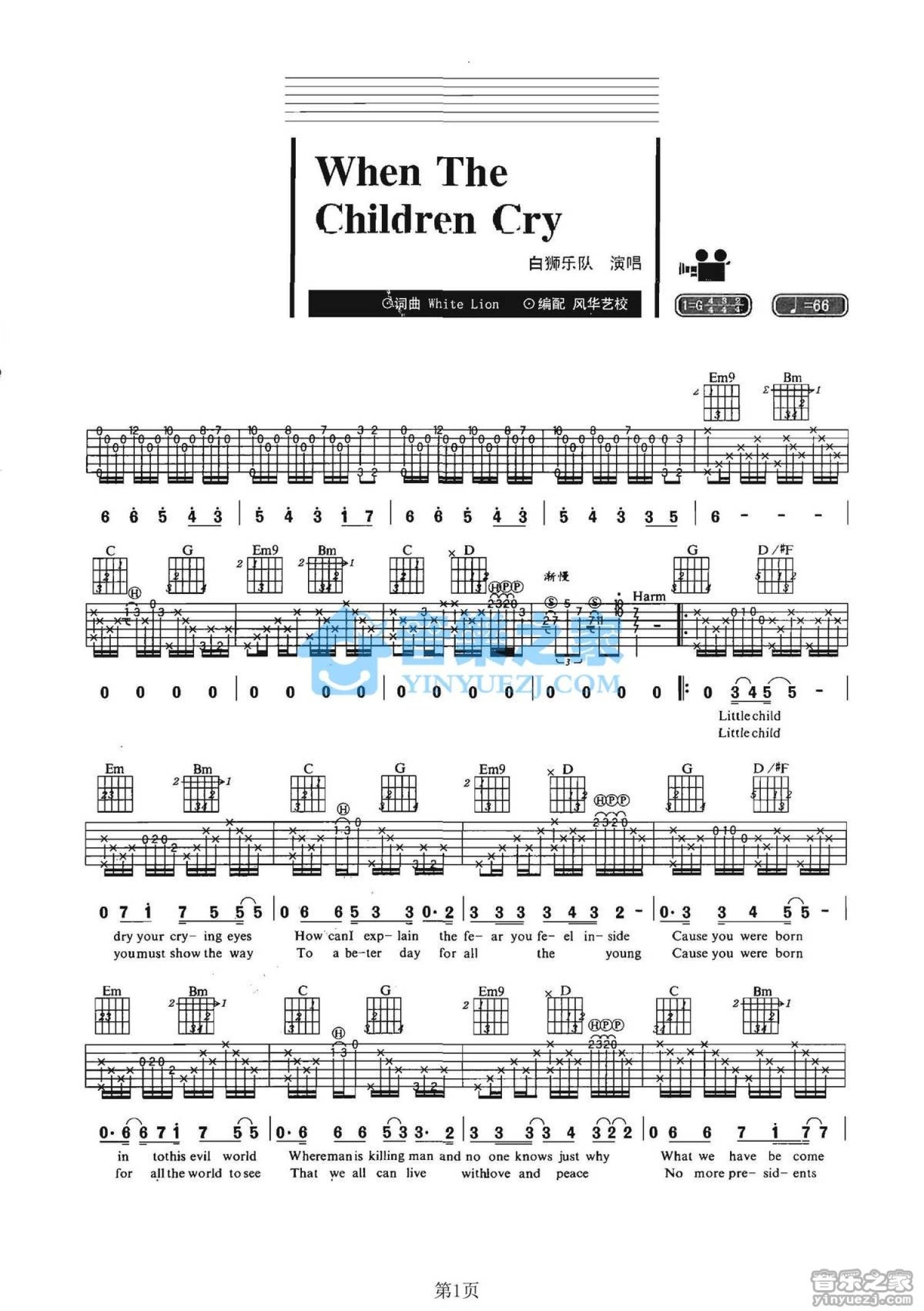 曲谱介绍: G调版《WhenTheChildrenCry》吉他弹唱六线谱