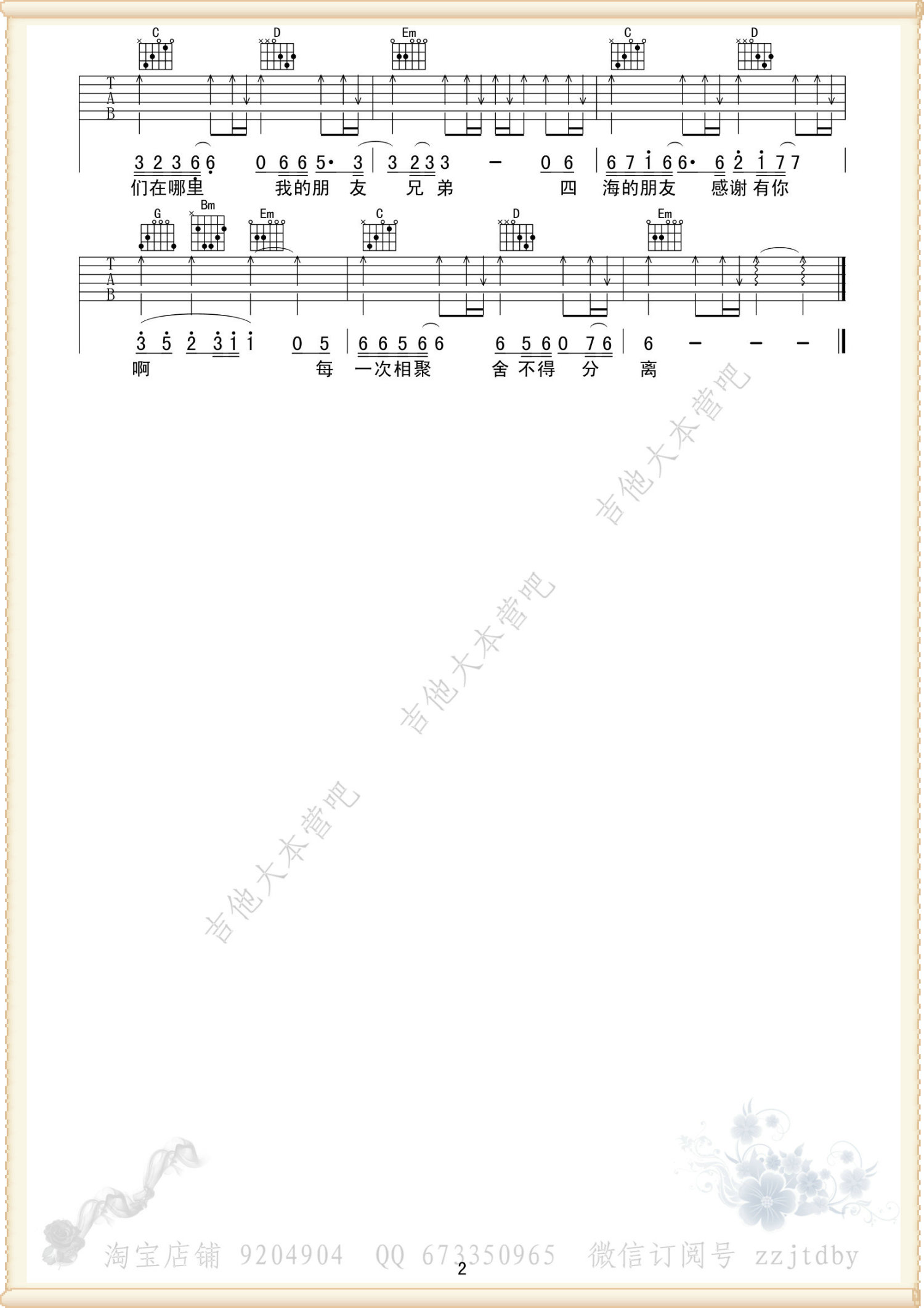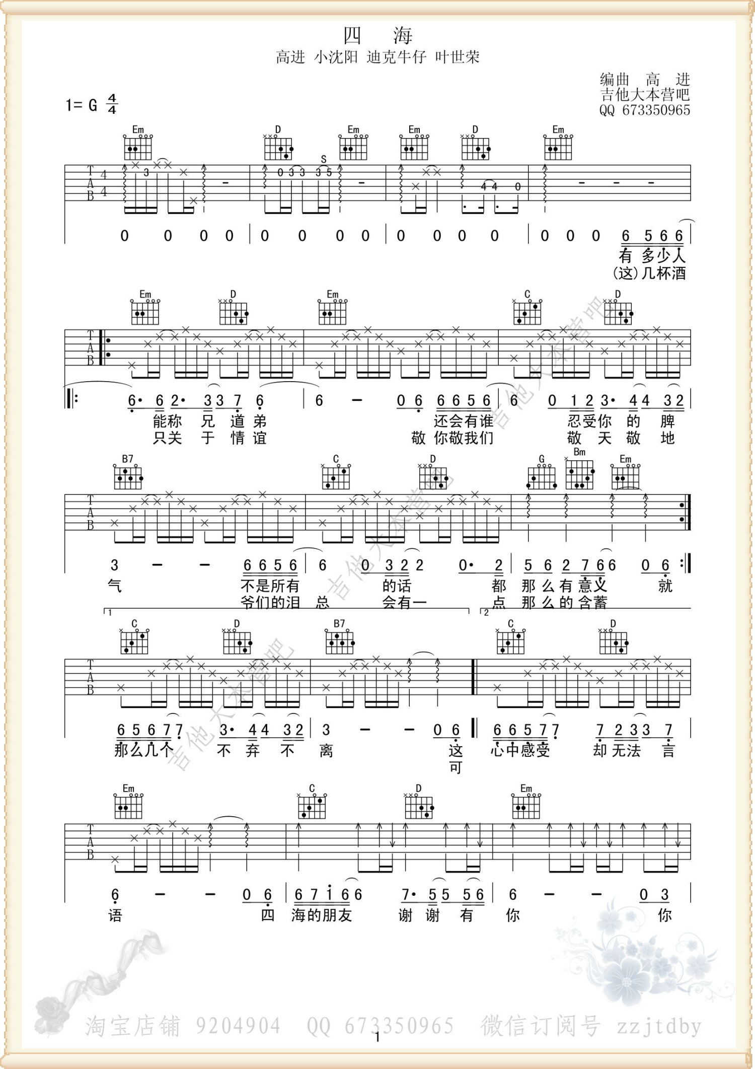 曲谱介绍: G调原版小沈阳/高进《四海》吉他弹唱六线谱