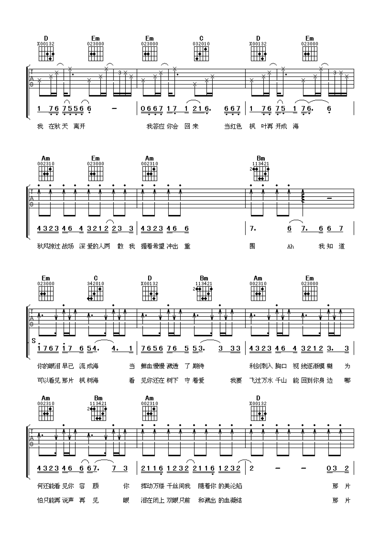 当前位置:琴谱网>吉他弹唱>黄色枫叶