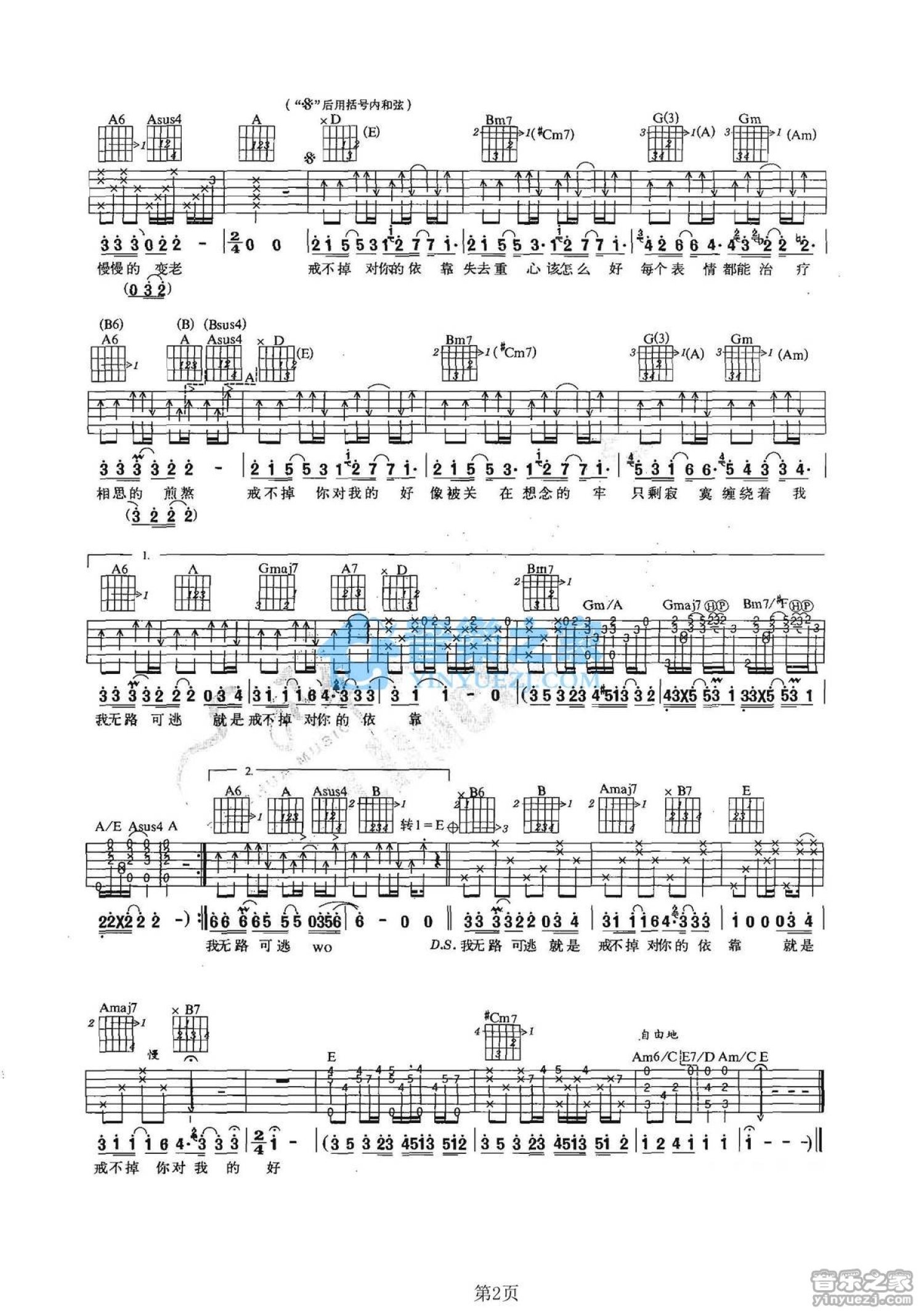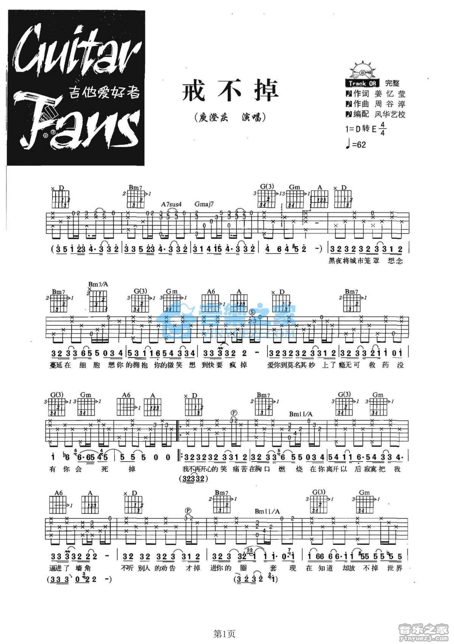 曲谱介绍: D转E调版庾澄庆《戒不掉》吉他弹唱六线谱