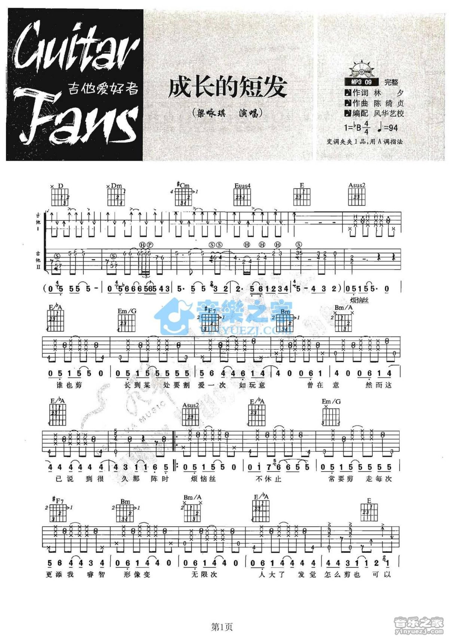 当前位置:琴谱网>吉他弹唱>成长的短发