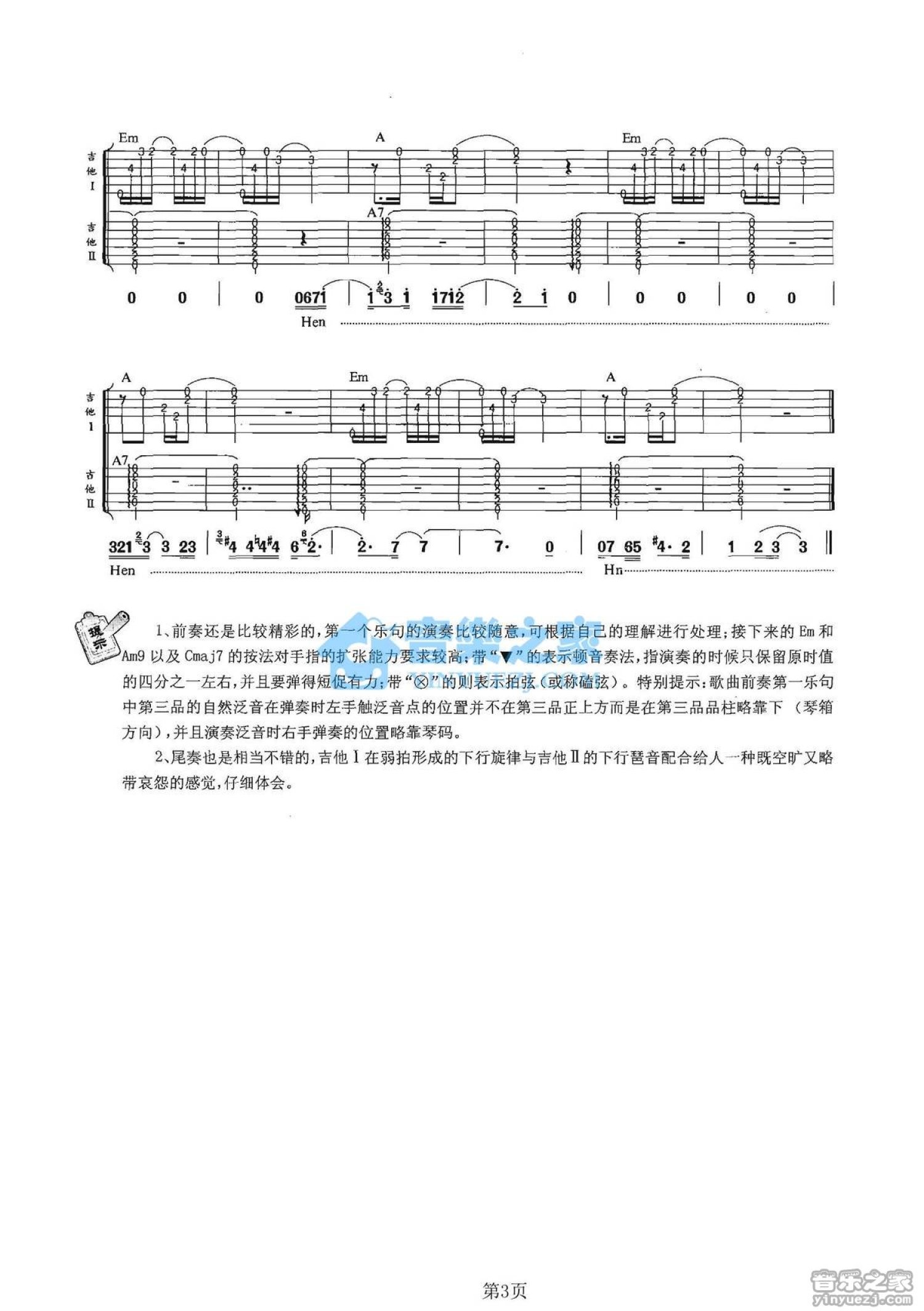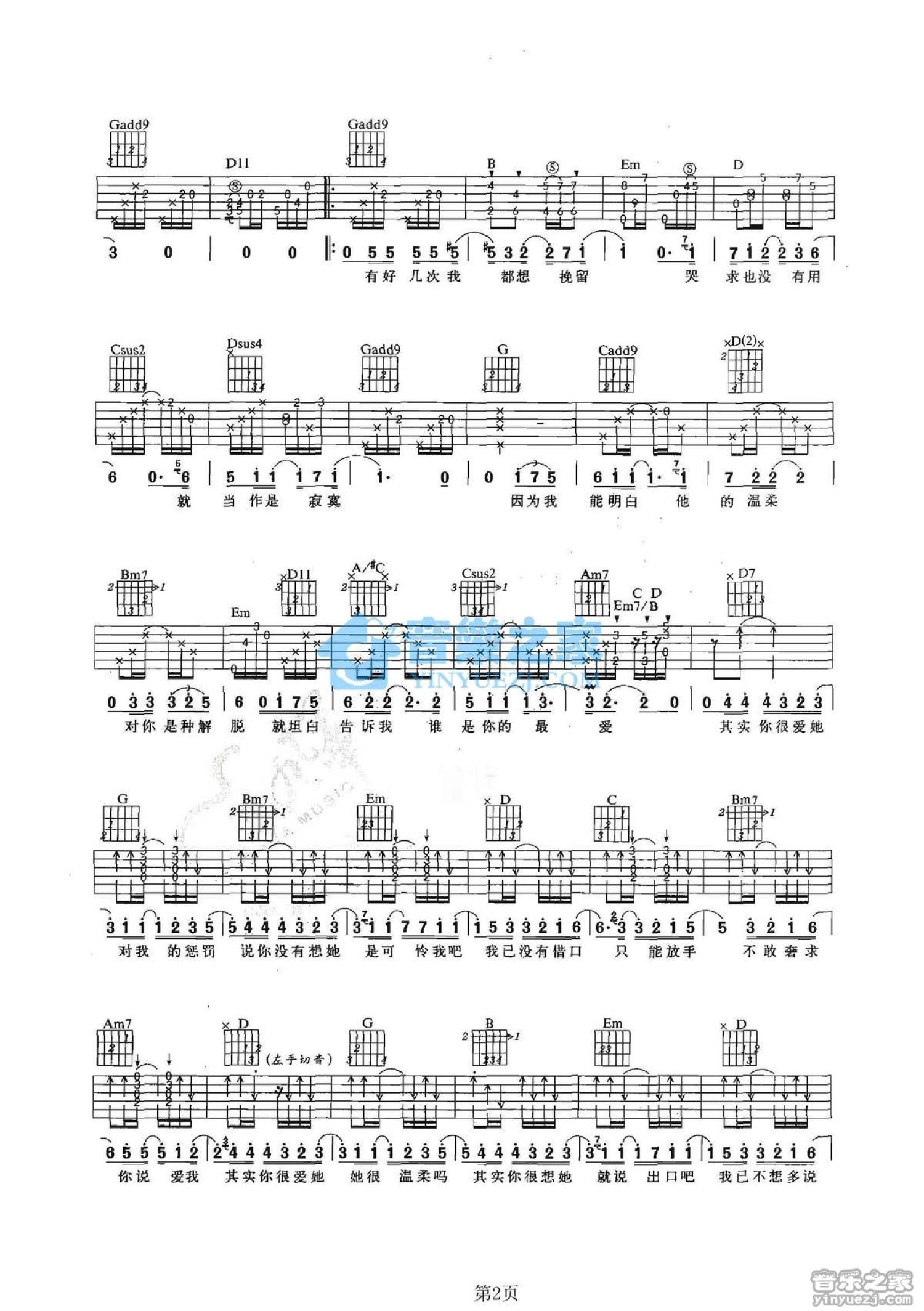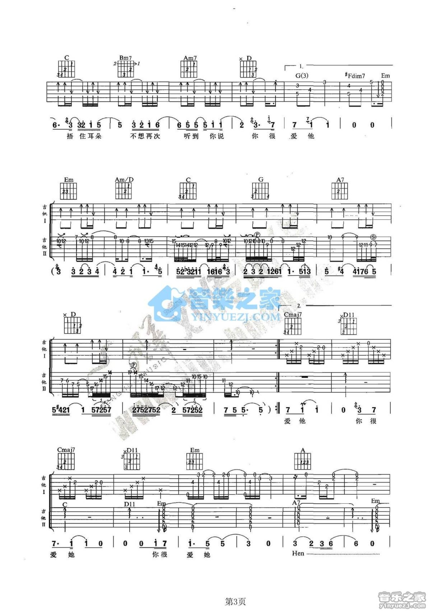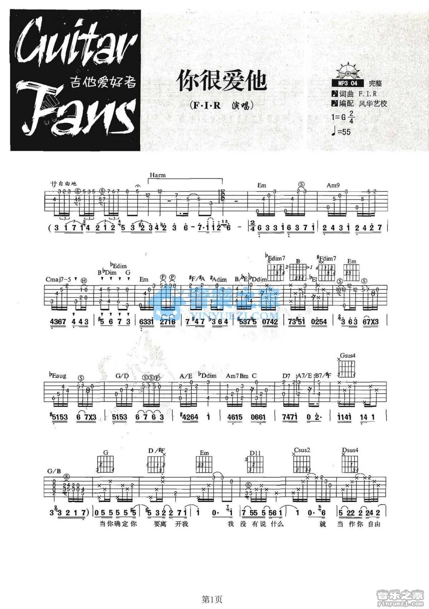 曲谱介绍: G调双吉他版飞儿乐团《你很爱他》吉他弹唱六线谱
